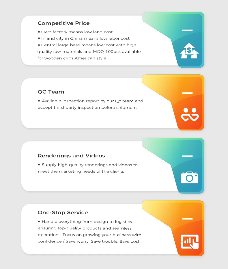 Nombre del producto Cama de bebé Cames de madera Cuna de bebé de madera Material 100% madera de pino/hío de alta calidad. Contenido Cama de bebé, cama de casa, trona para bebé, andador de bebé.... Característica Portátil, ecológico, cambiable, Tamaño del producto 120*60cm Personalizar servicio Tamaño/Material/Color personalizado/Marca de envío/Logotipo ODM/OEM Bienvenido Soporte Soporte de muestra/agente, servicio posventa