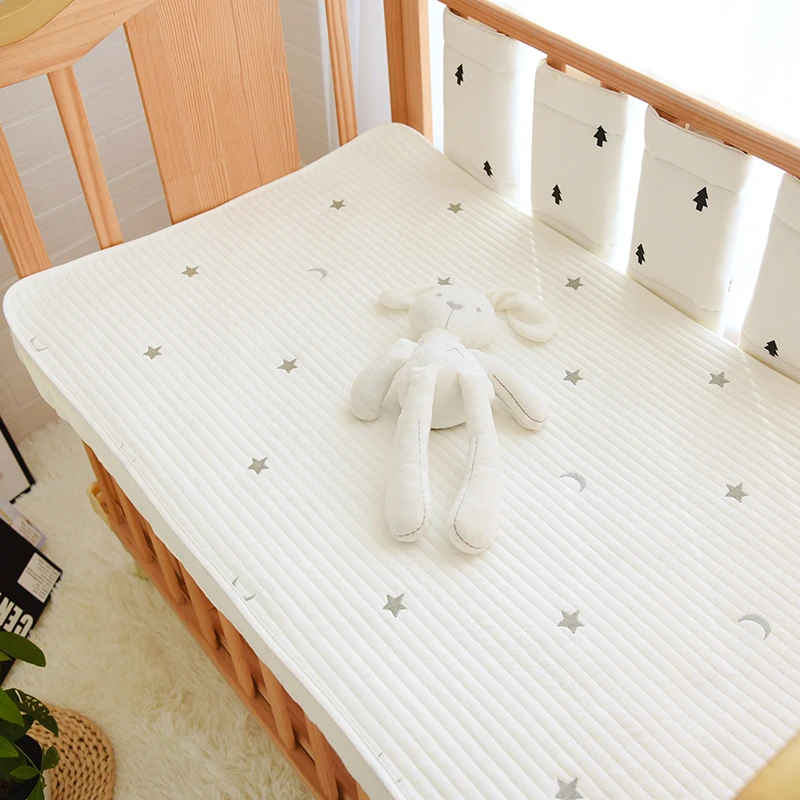 Cuna coreana para bebé, sábana acolchada de algodón, oso, estrella, limón, globo bordado, niños, niños pequeños, sábanas, ropa de cama