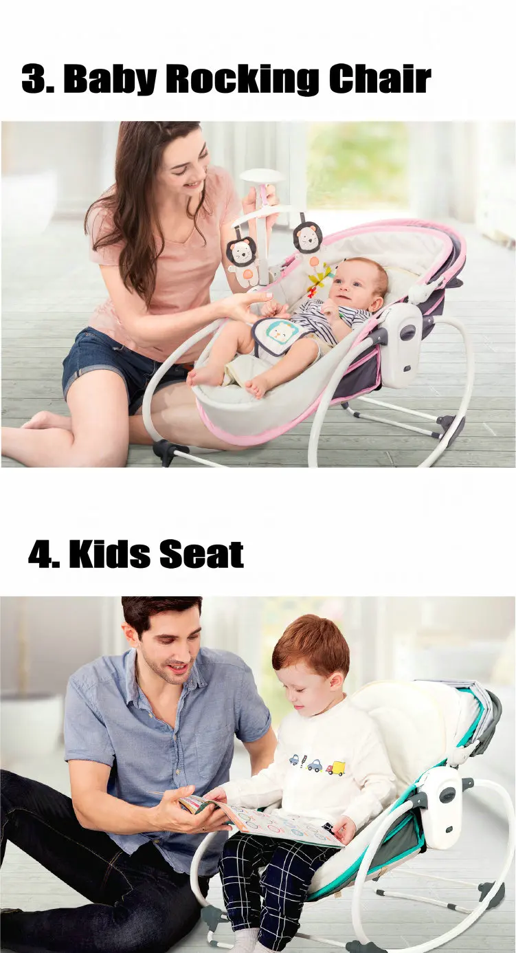 Cuna mecedora eléctrica para bebé 5 en 1, cuna eléctrica para bebé, mecedora con vibración, puede sentarse, puede levantar la cesta, balancín rosa para bebé