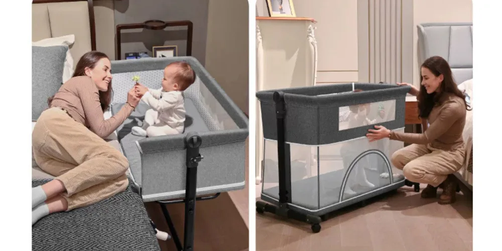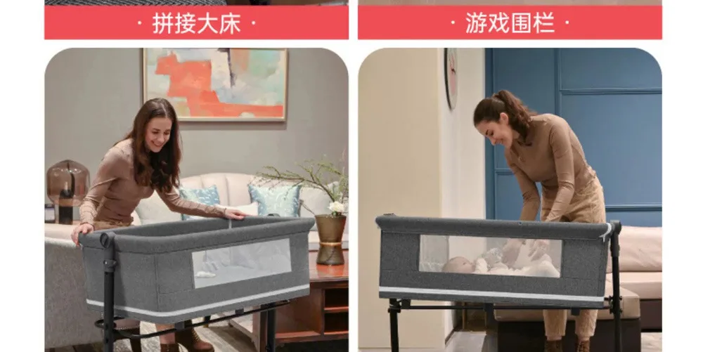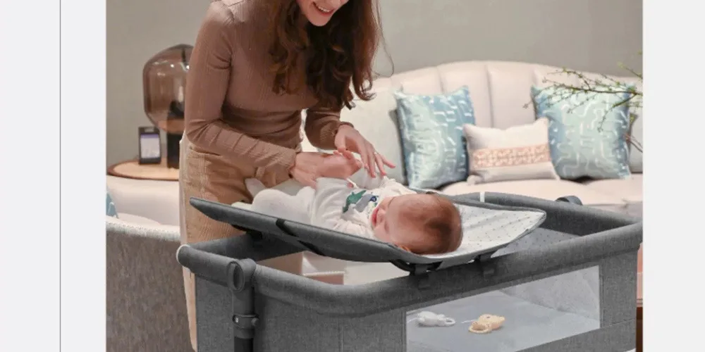 Cuna de juego portátil, cama de conexión plegable, cuna portátil para bebé, mecedora infantil, mesa de cambio