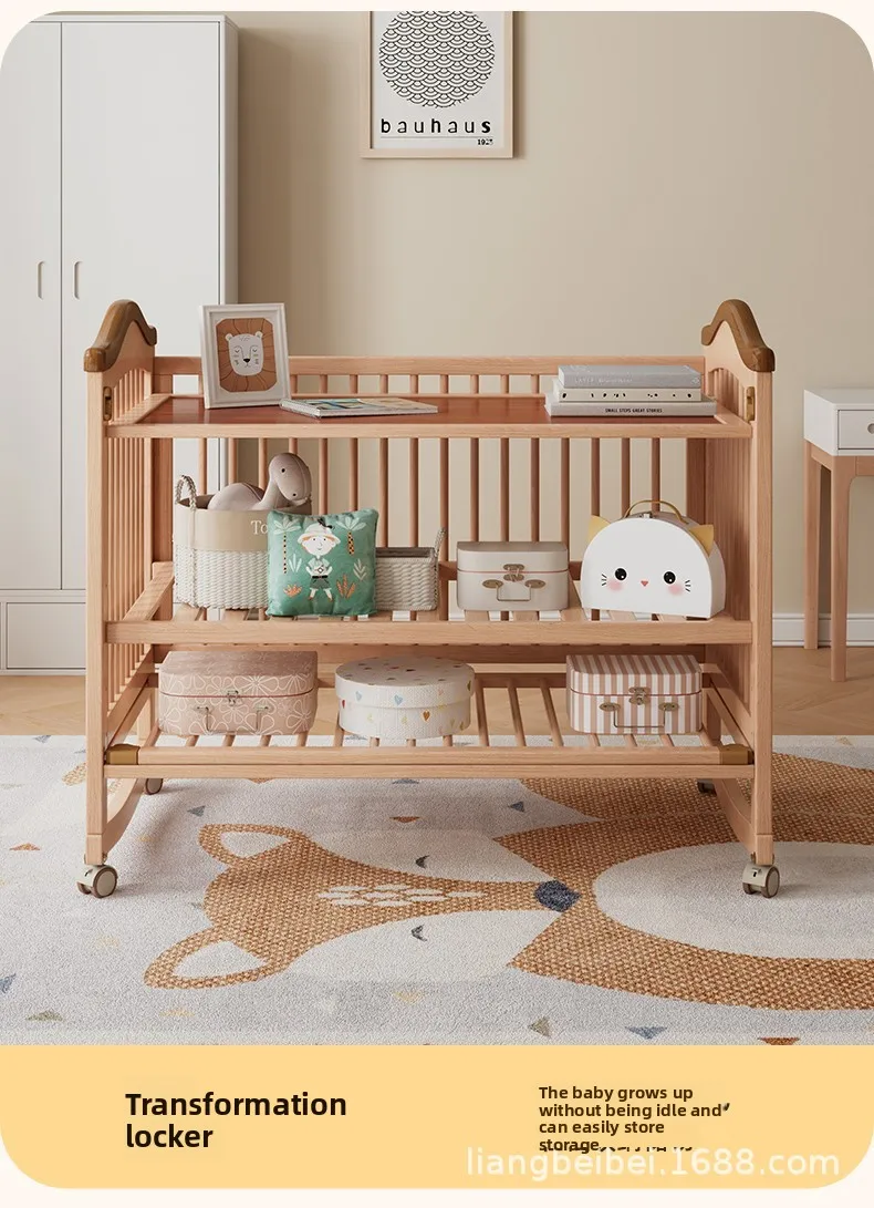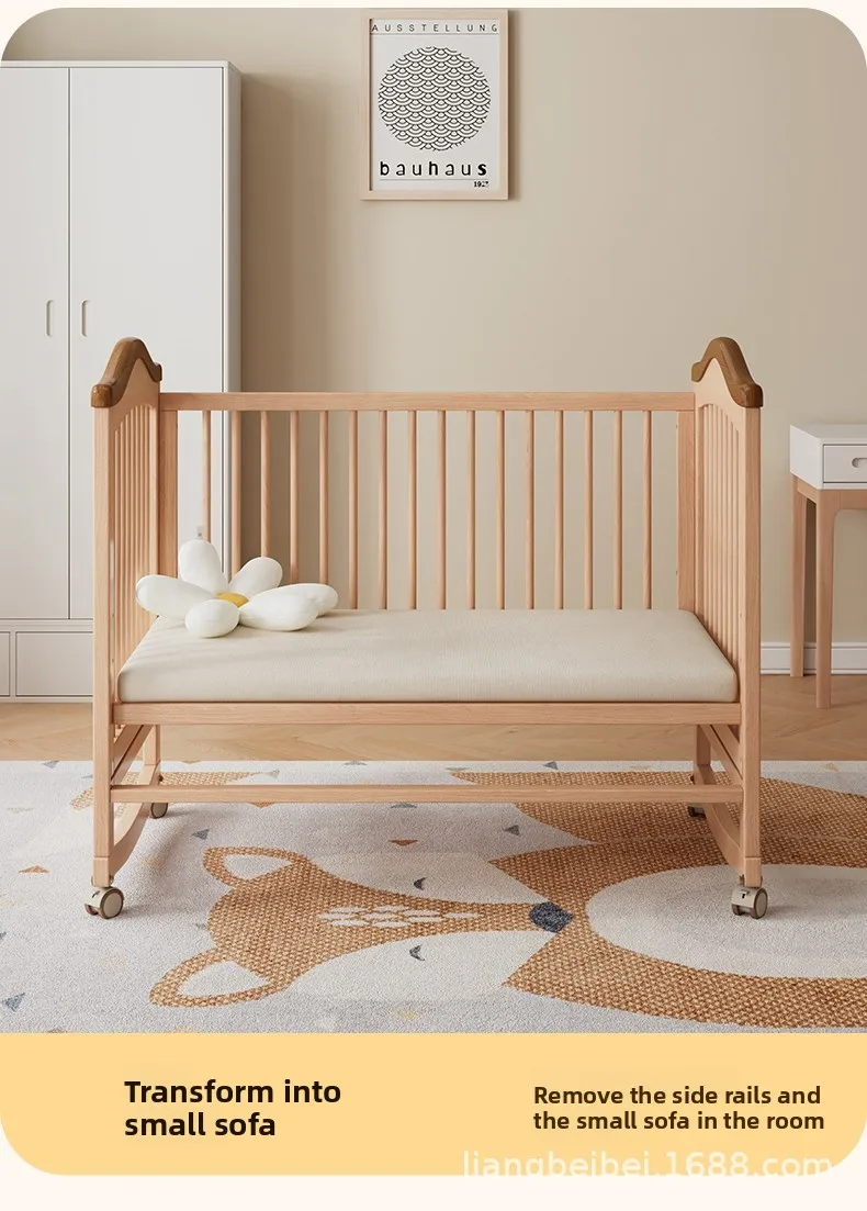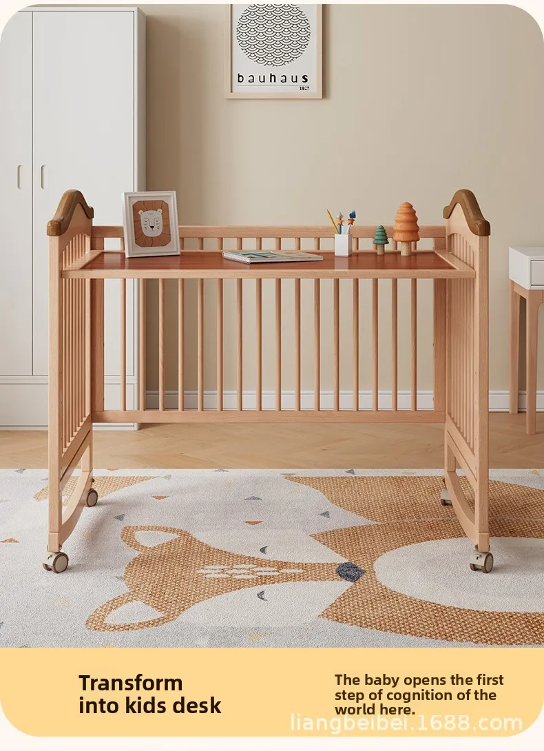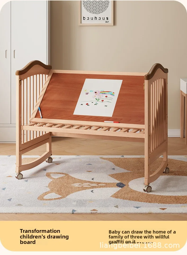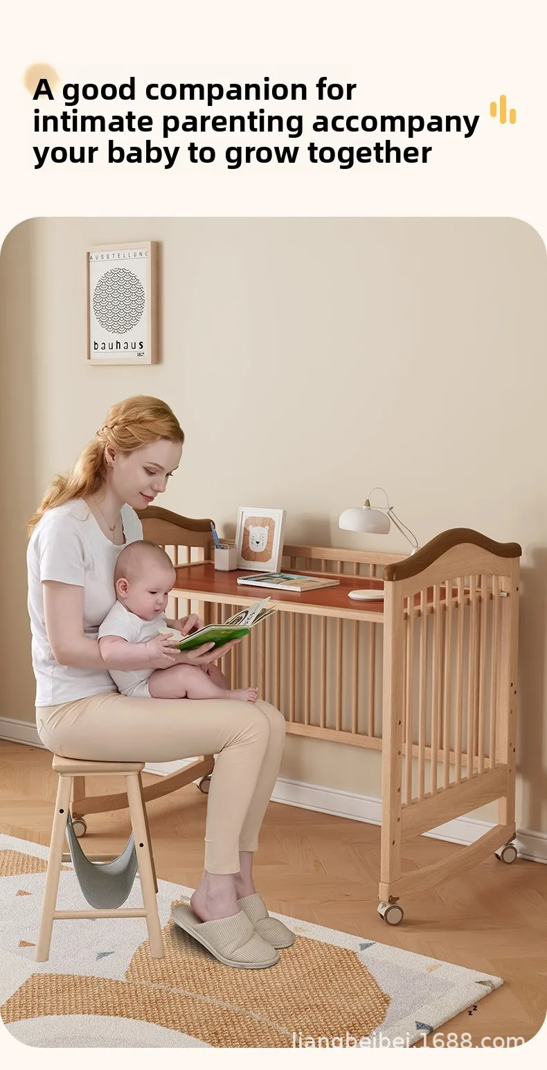 Cuna de madera maciza para bebé recién nacido, multifuncional, sin pintura, móvil, empalme, cama grande, suministro especial