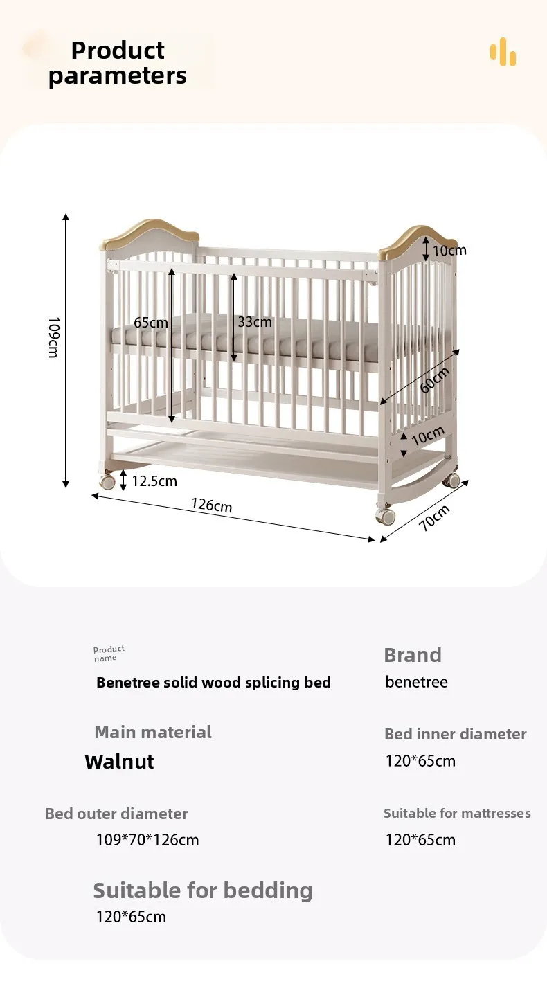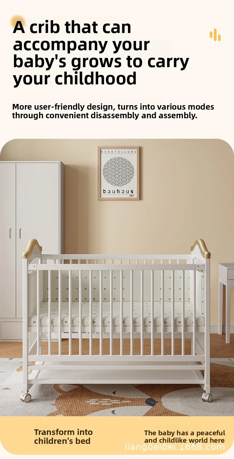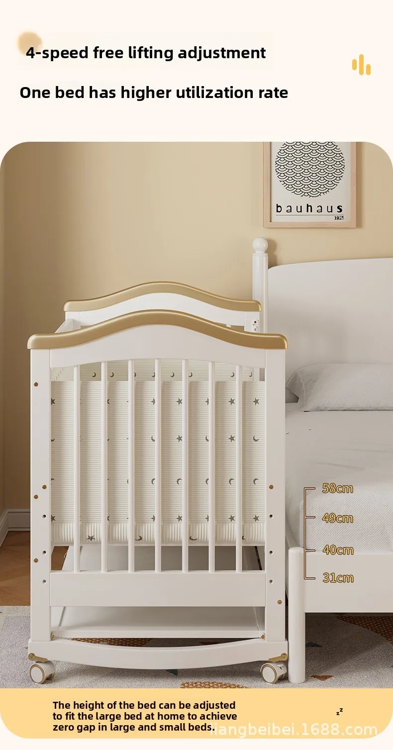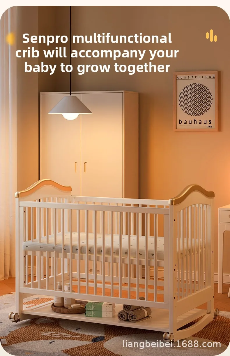 Cuna de madera maciza para bebé recién nacido, multifuncional, sin pintura, móvil, empalme, cama grande, suministro especial