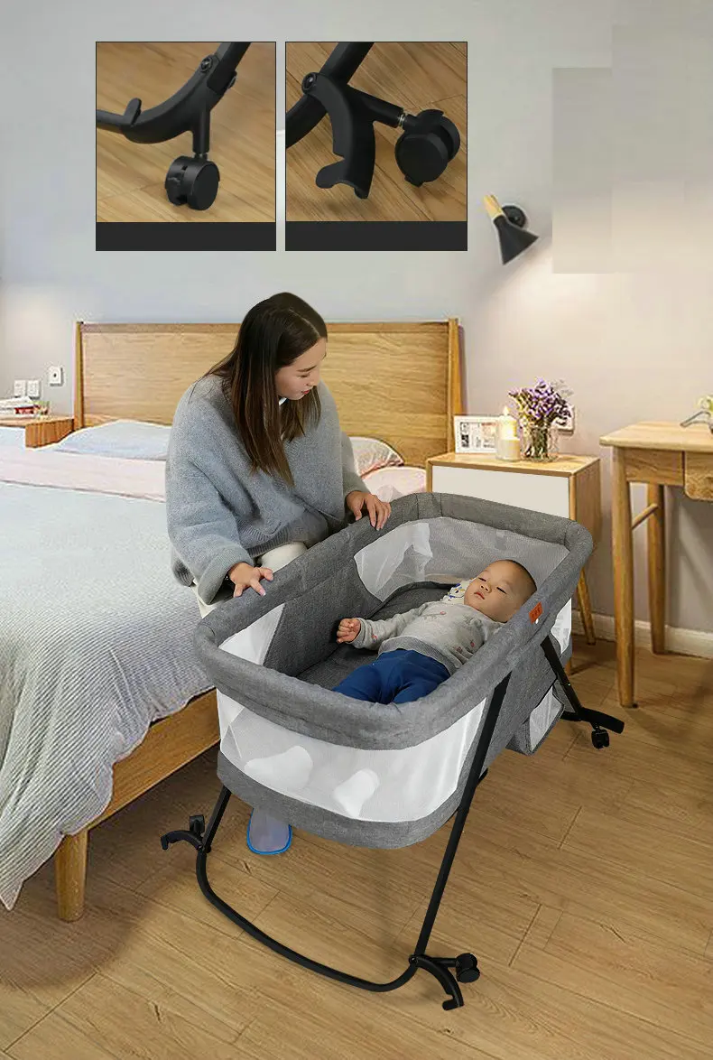 Cama de bebé multifuncional, puede ser cuna infantil, puede ser cuna mecedora.