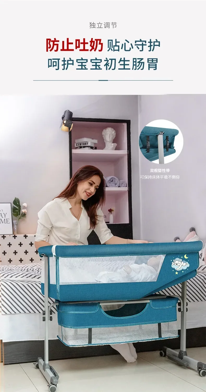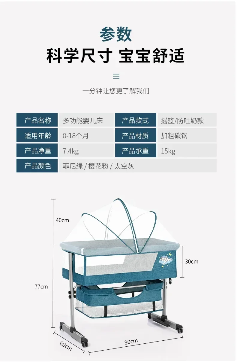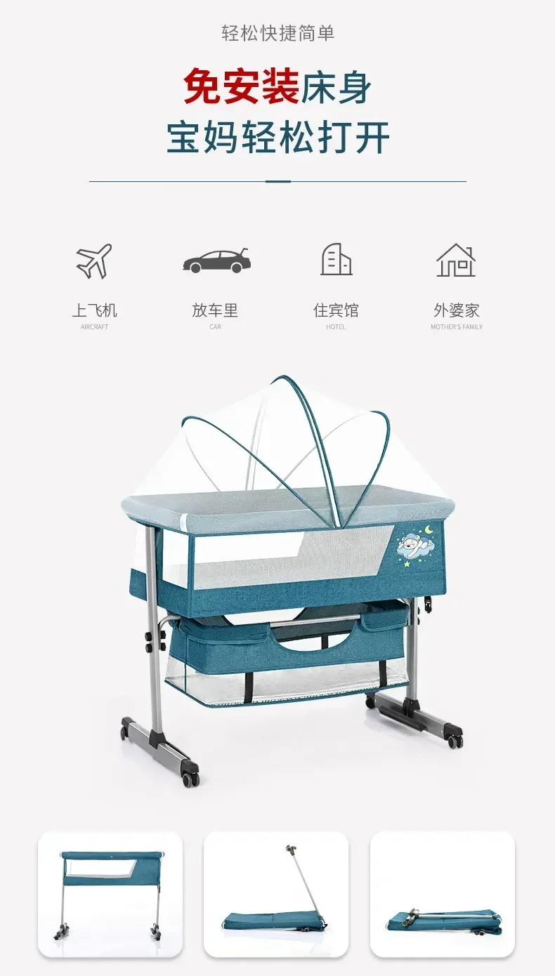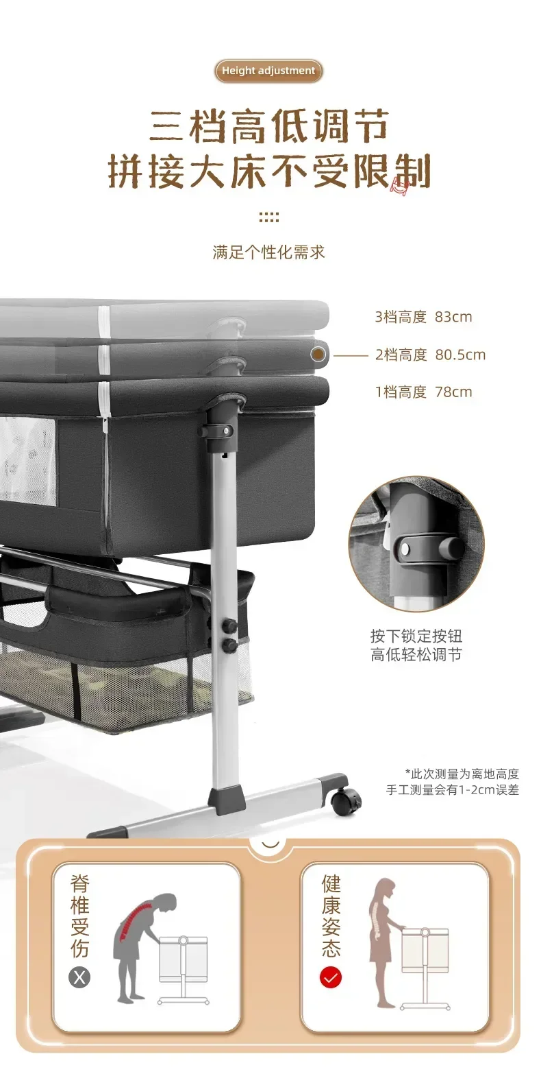 Cuna plegable de empalme para recién nacidos de 0 a 2 años, cuna plegable multifuncional, cama para dormir para bebé, cuna para bebé