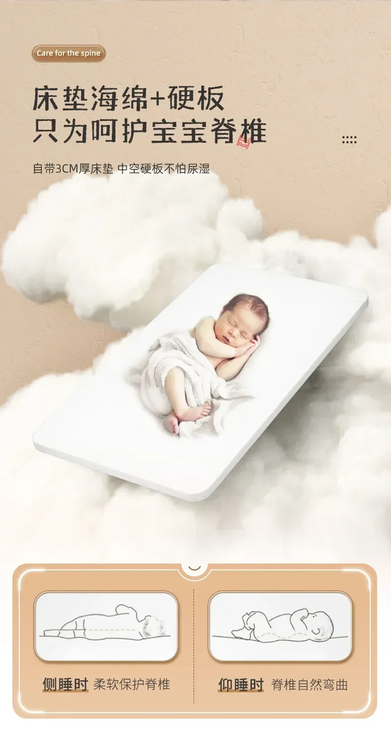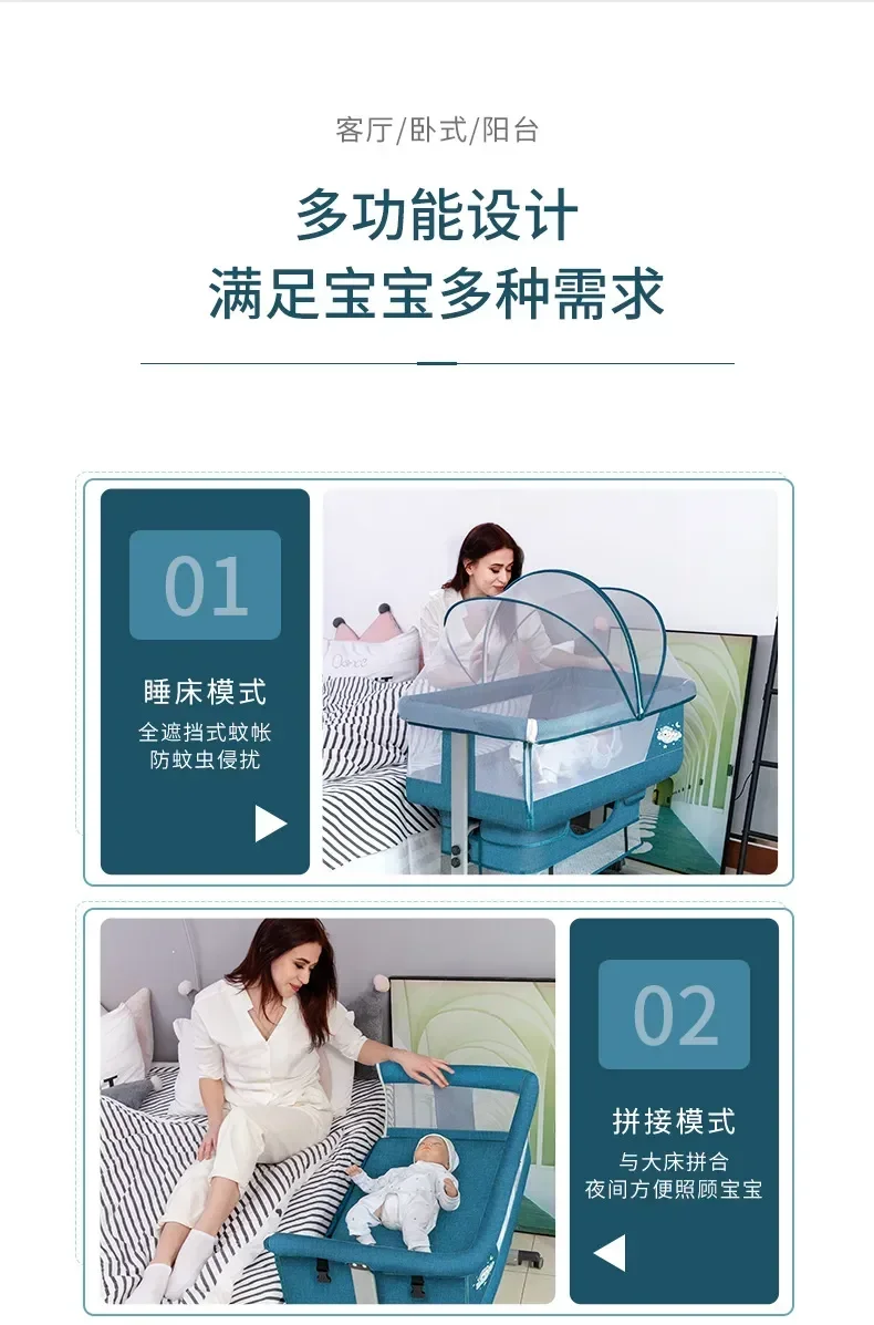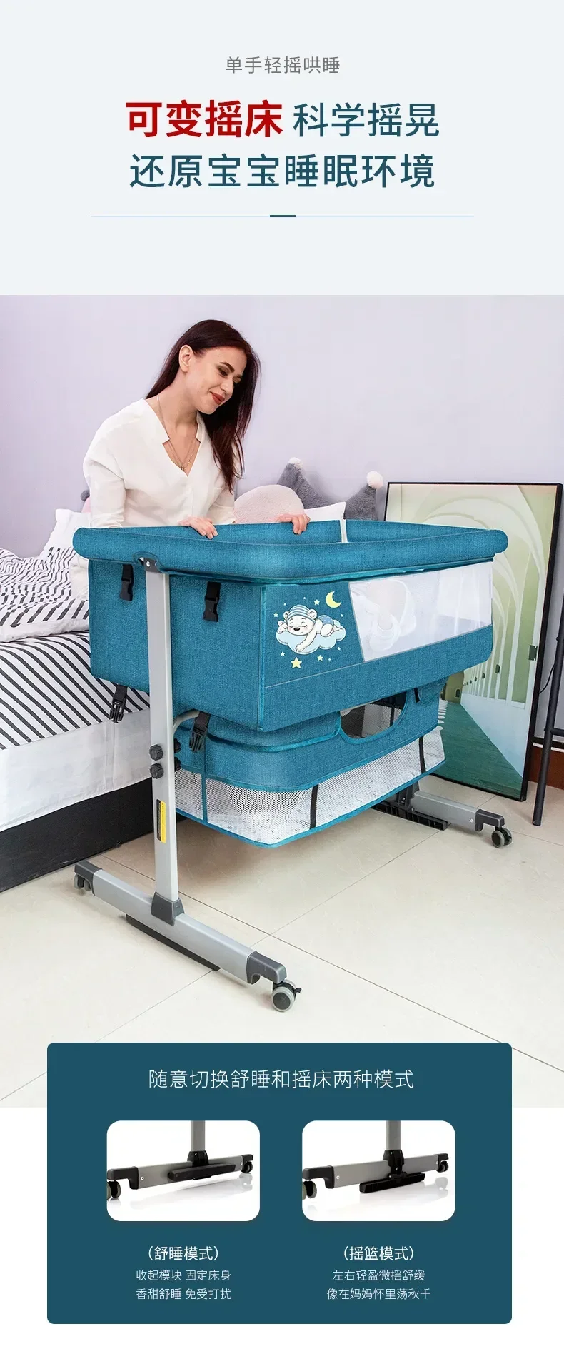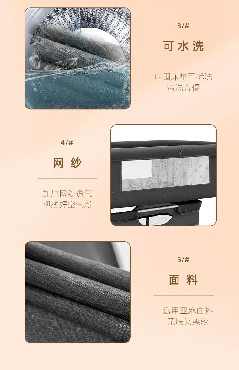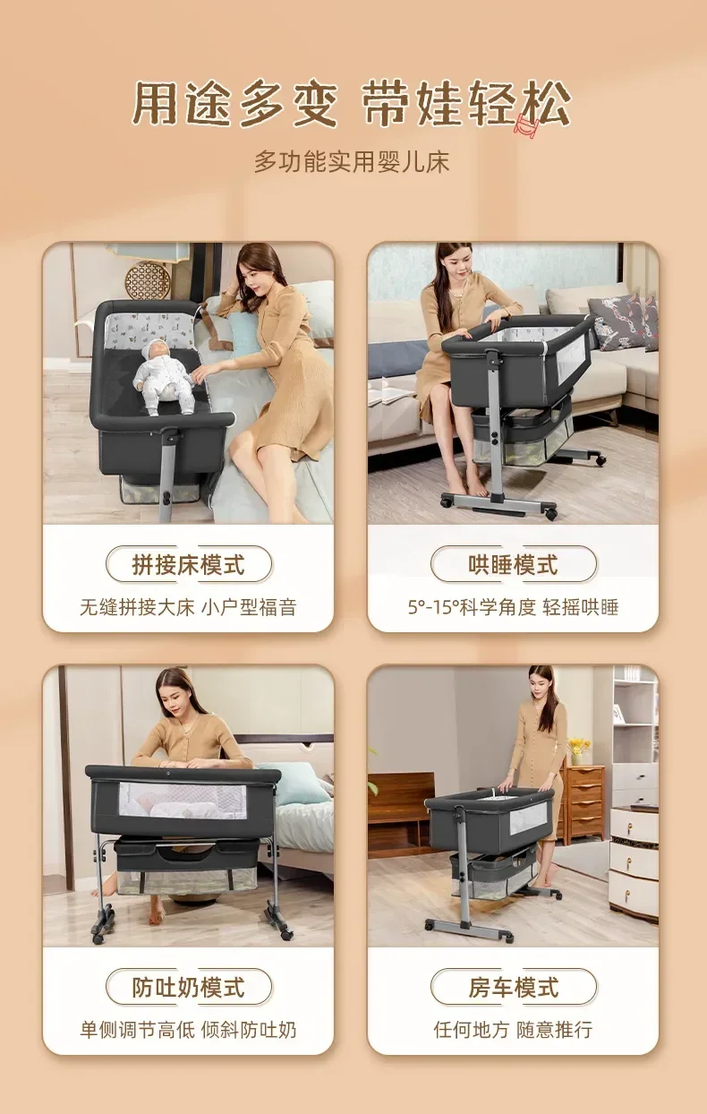 Cuna plegable de empalme para recién nacidos de 0 a 2 años, cuna plegable multifuncional, cama para dormir para bebé, cuna para bebé
