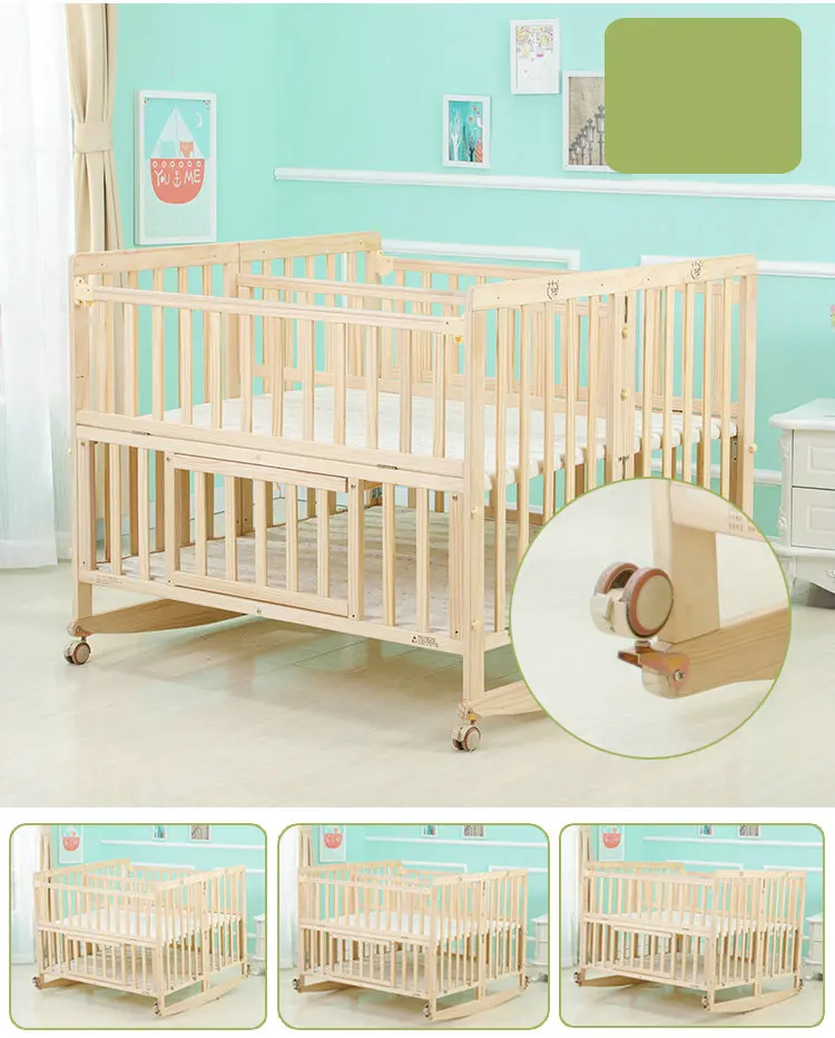 Madera de pino natural, cuna sin pintura, madera pulida y lisa, ecológica, buena para sus bebés.