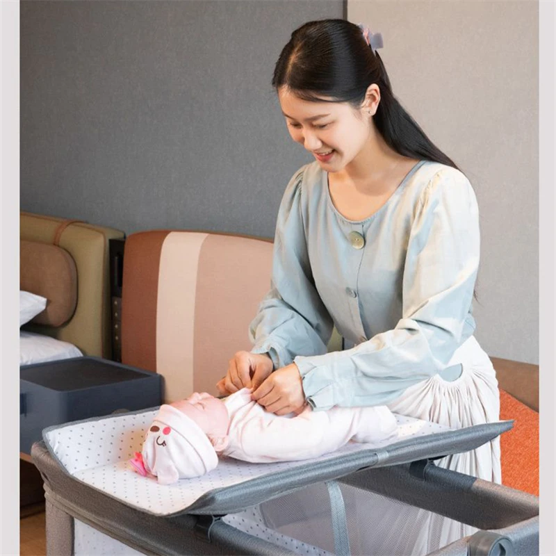 Comprar Cuna plegable móvil multifuncional para niños, cama de costura Simple de Color sólido, portátil, elevable, Universal, recién nacido