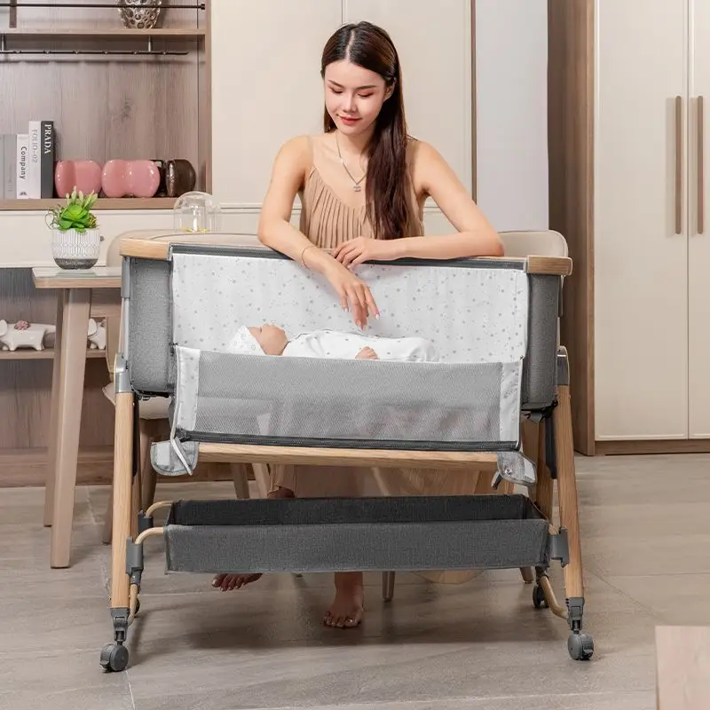 Comprar Cuna plegable de seis niveles, cuna multifuncional con ajuste de altura, empalme, cama de matrimonio, cuna de bebé