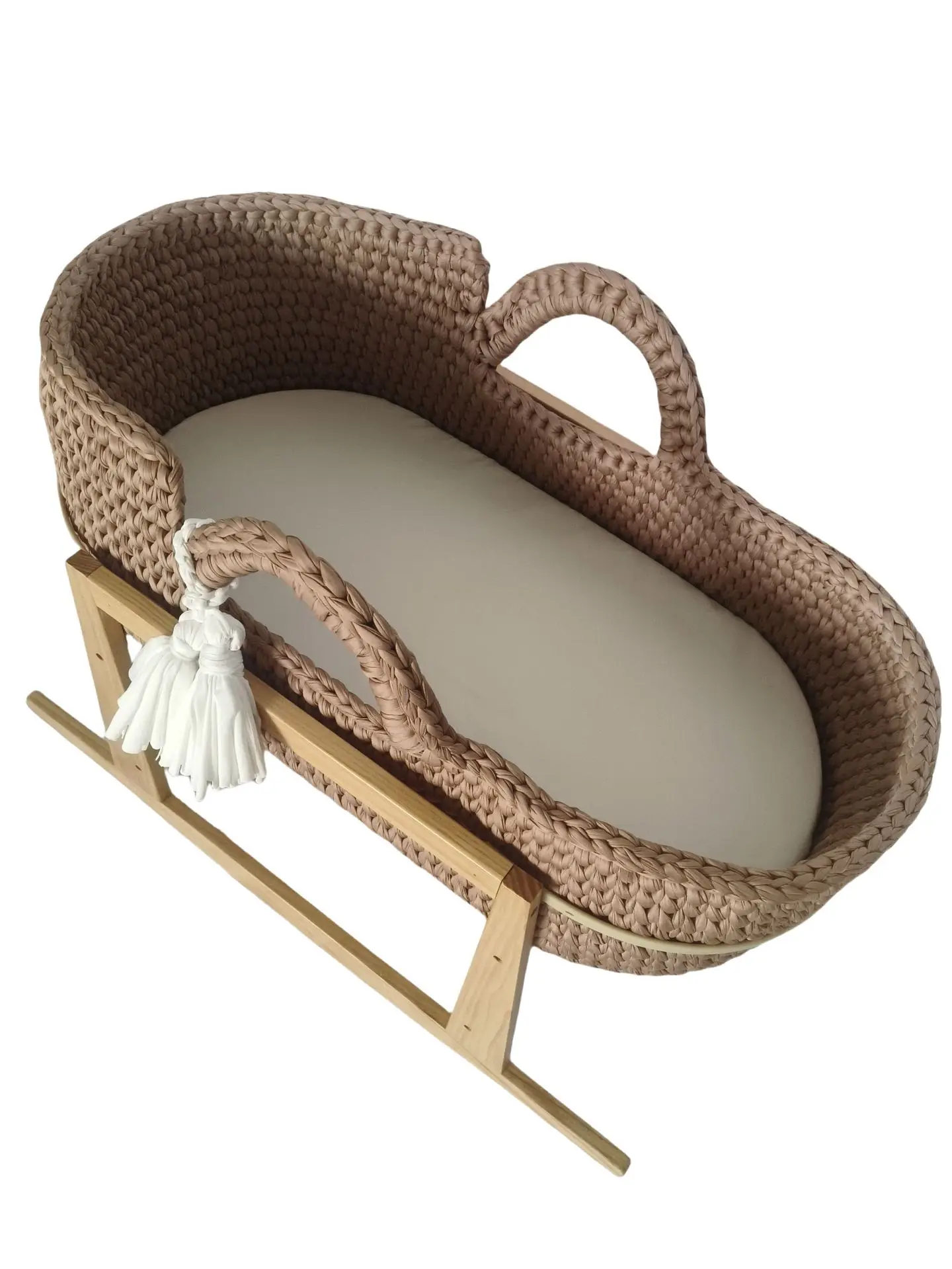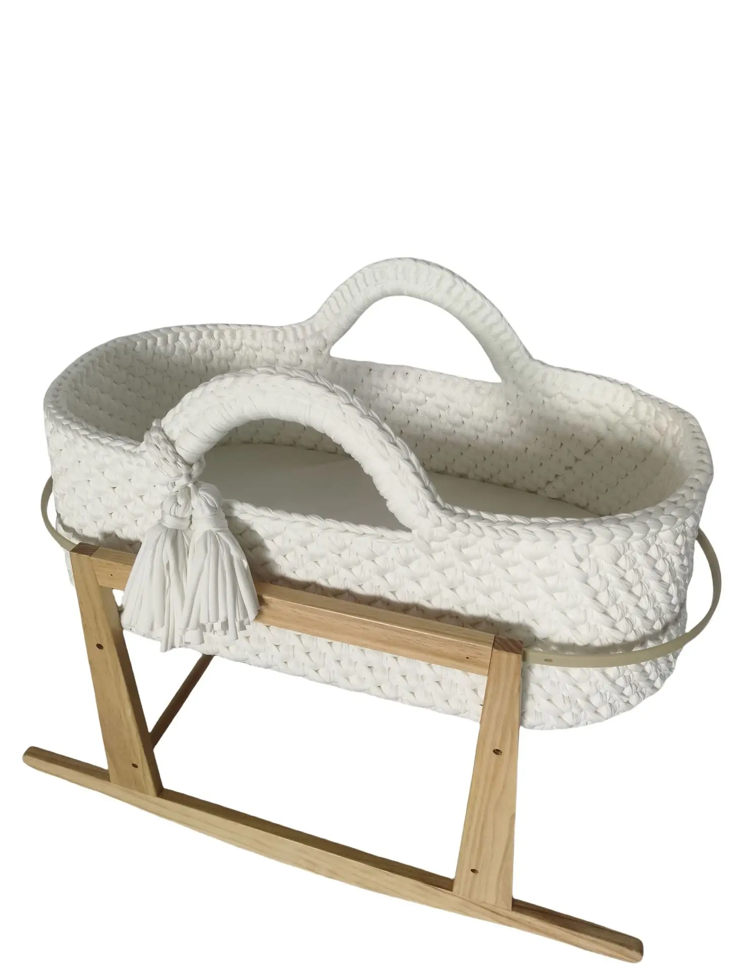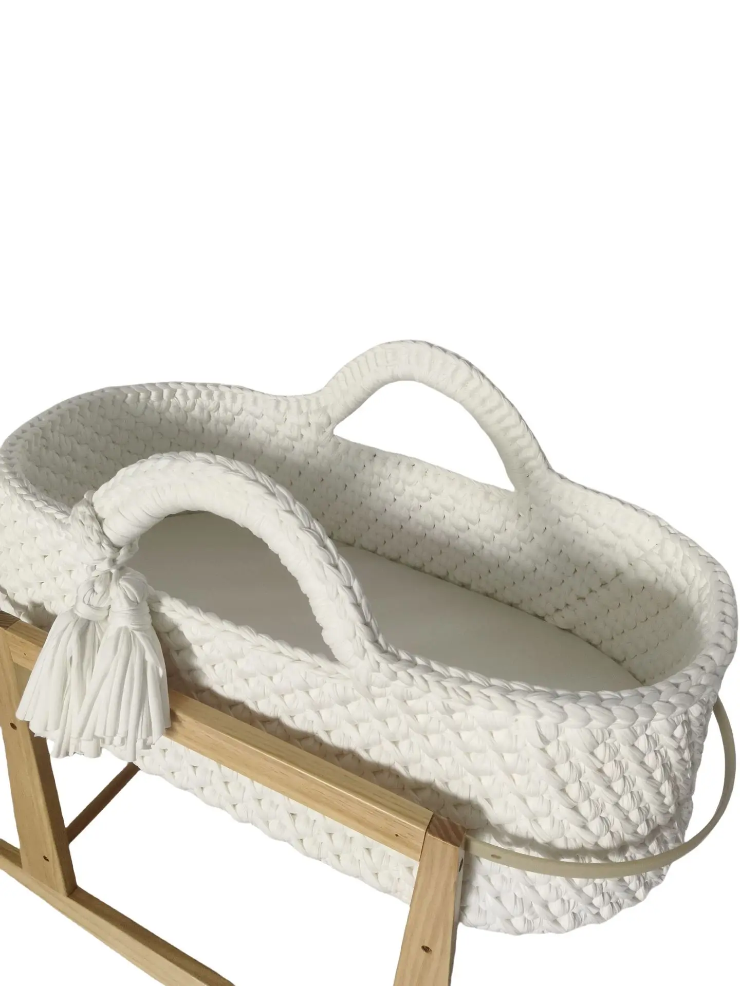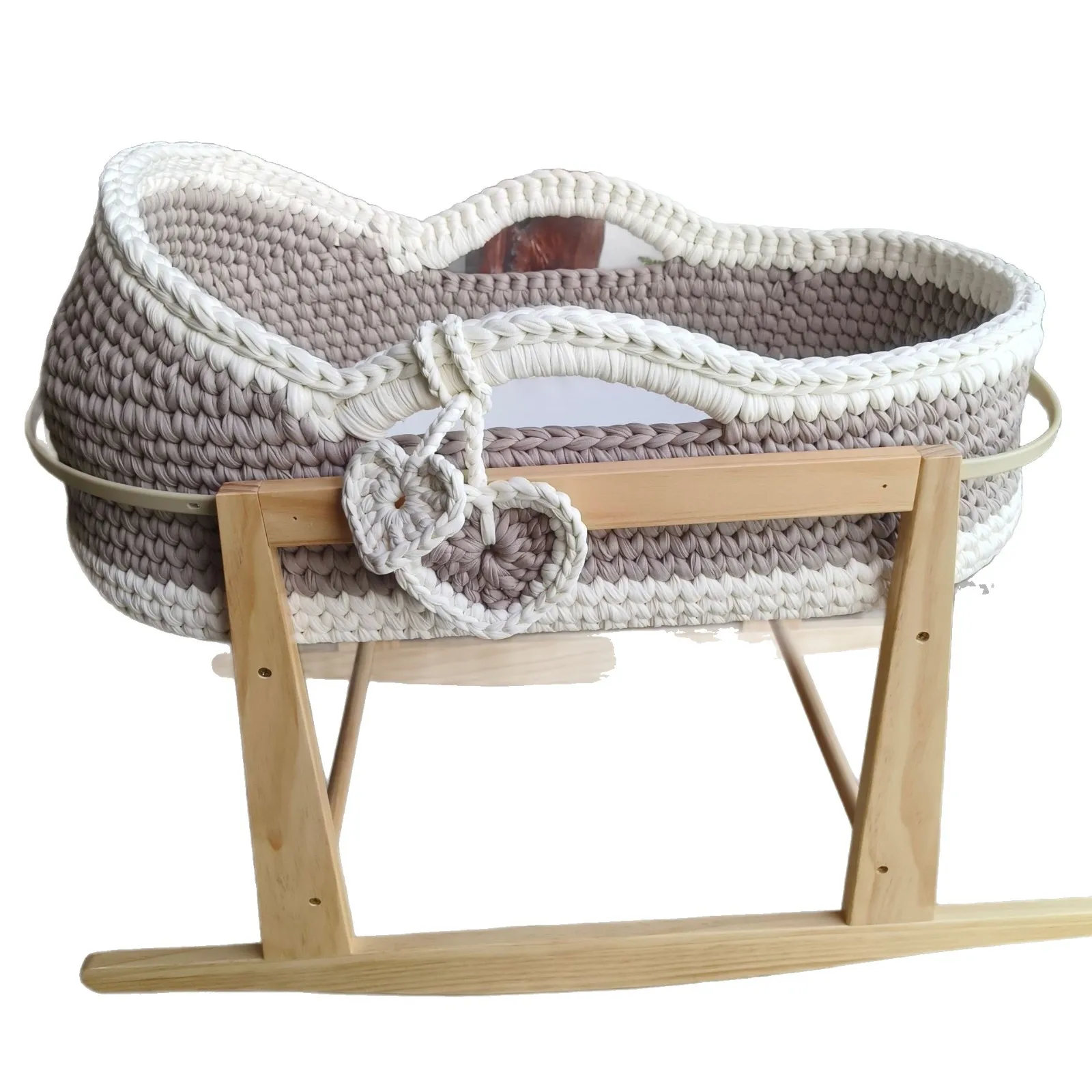 Cuna de una sola capa de ganchillo a mano, marco de mano, cuerda de algodón tejida, tira de tela para cuna, mano tejida para recién nacido