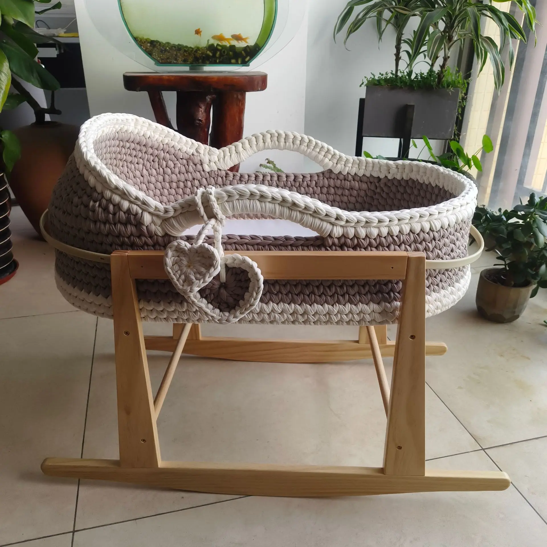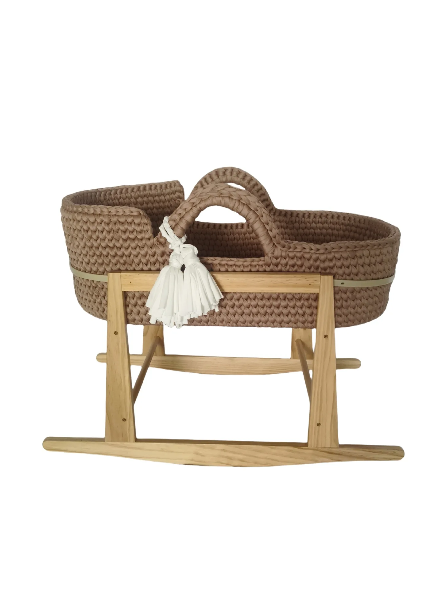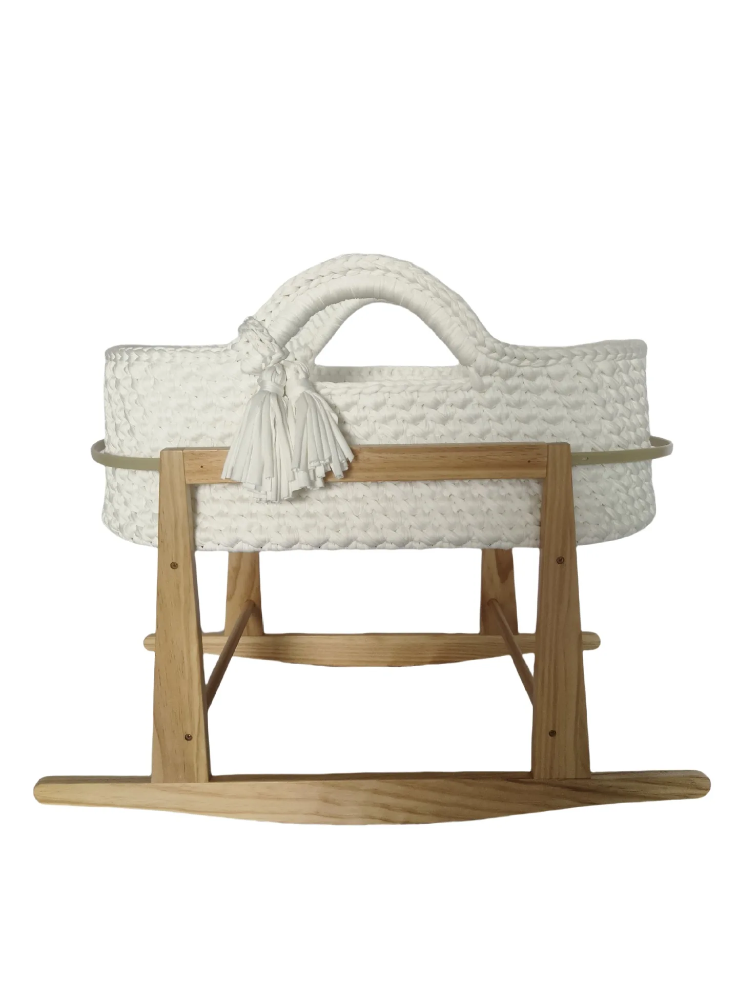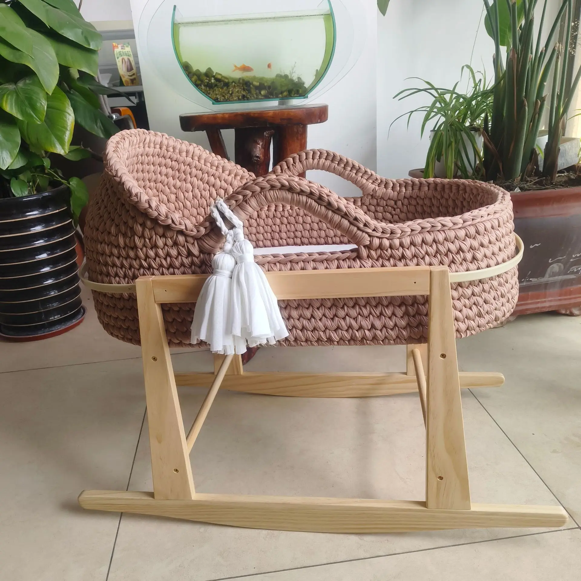 Cuna de una sola capa de ganchillo a mano, marco de mano, cuerda de algodón tejida, tira de tela para cuna, mano tejida para recién nacido