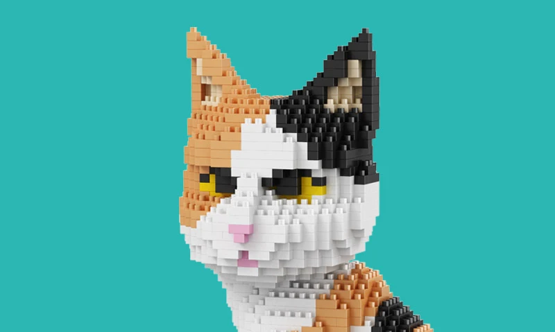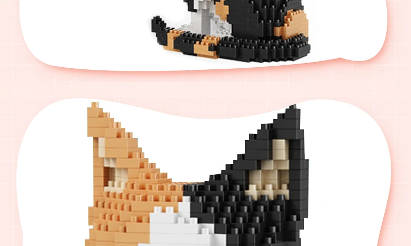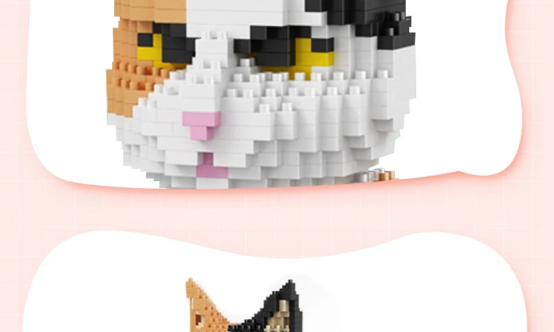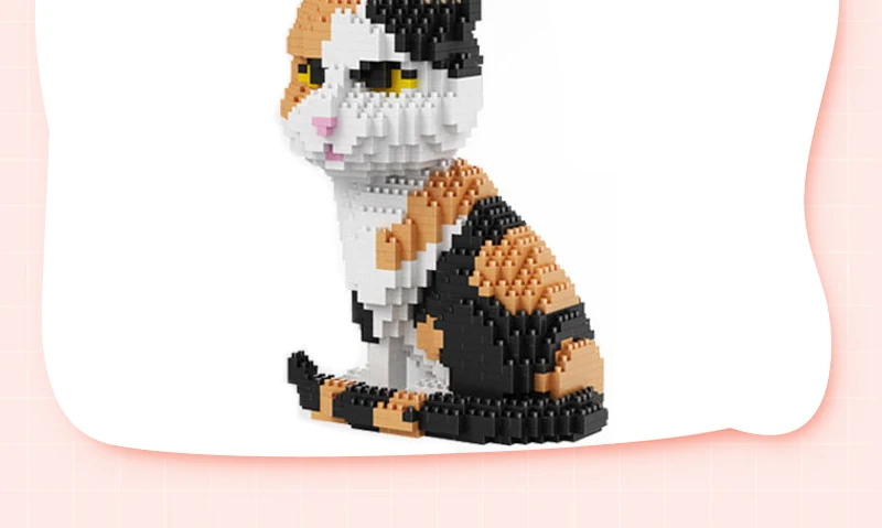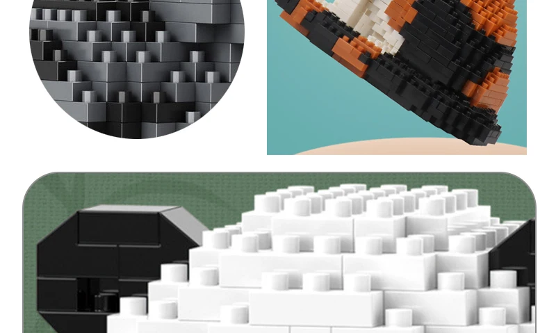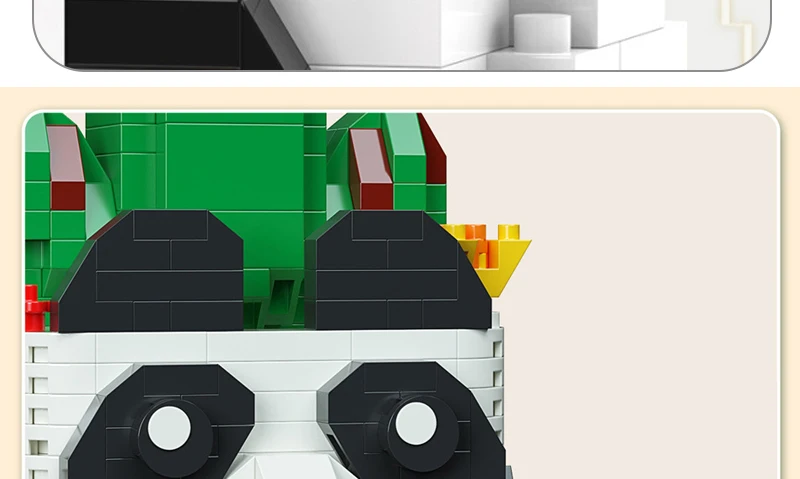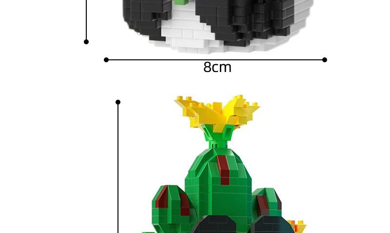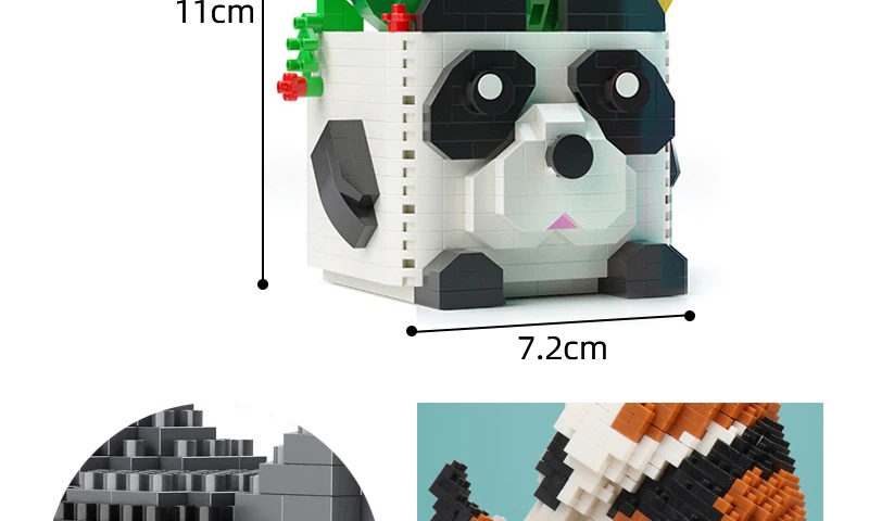 Build and display a charming mini-zoo with this premium micro-block trio: • 18cm Calico Cat (1300 pcs): Curled tail, side-sitting posture, and cartoonish charm | • Panda and Bamboo (532 pcs): Waving paw, tilted bamboo snack, and semi-suspended legs for playful realism (height: 7.68cm) | • Panda Planter with Cactus (577 pcs): Height: 11cm | • Vibrant ABS Bricks: Safe, non-toxic, and compatible with major building block brands
