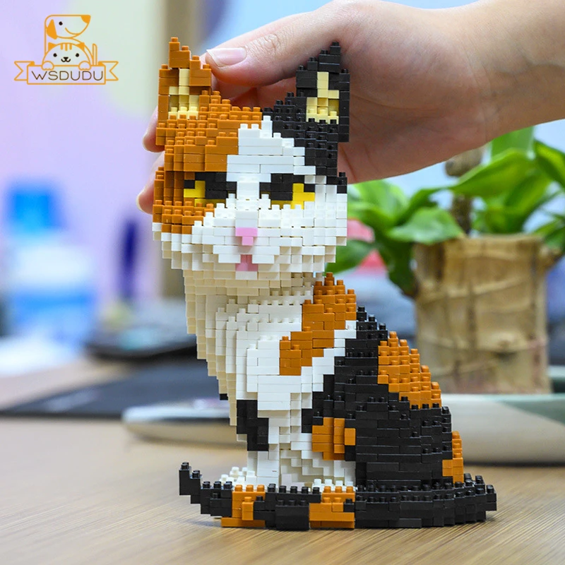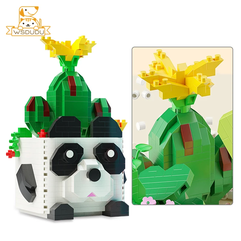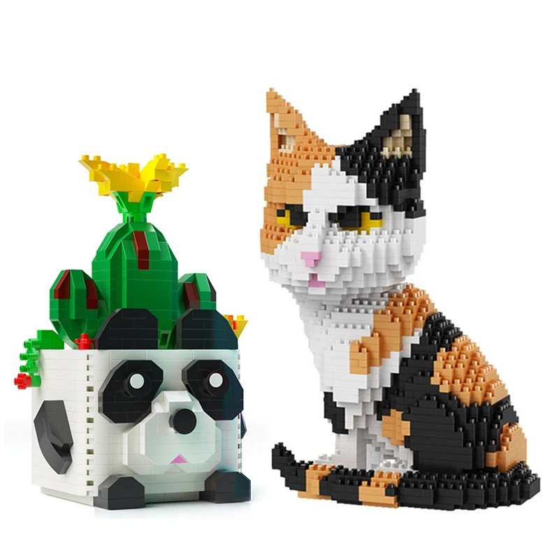 Comprar Cute Animal Building Blocks Calico Cat Panda Planter Cactus Display Micro Bricks Assembly Collectible Model Toy Adult Kids Gift