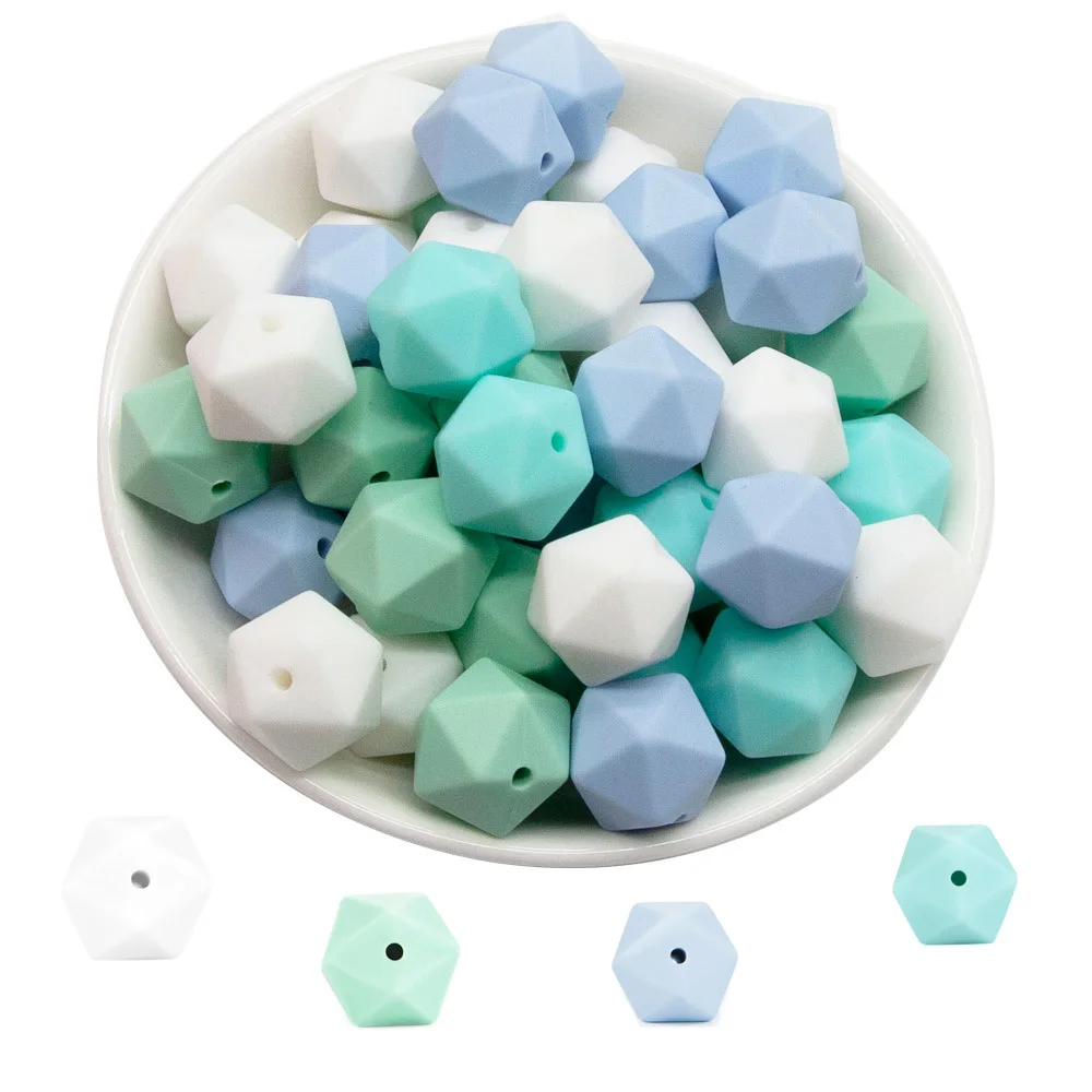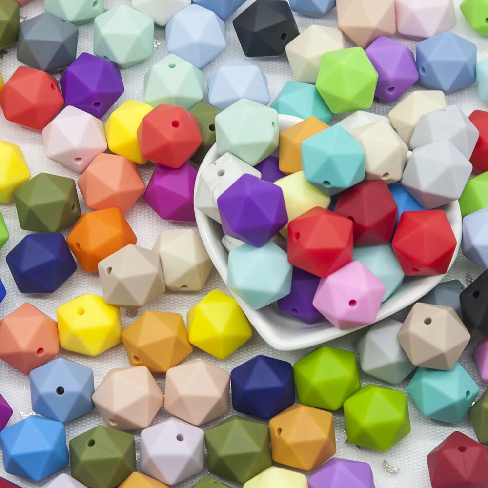 Cute-Idea 10 Uds 14mm cuentas de silicona icosahedro joyería para la dentición collar pulsera cadena sin BPA producto para bebé mordedor poligono