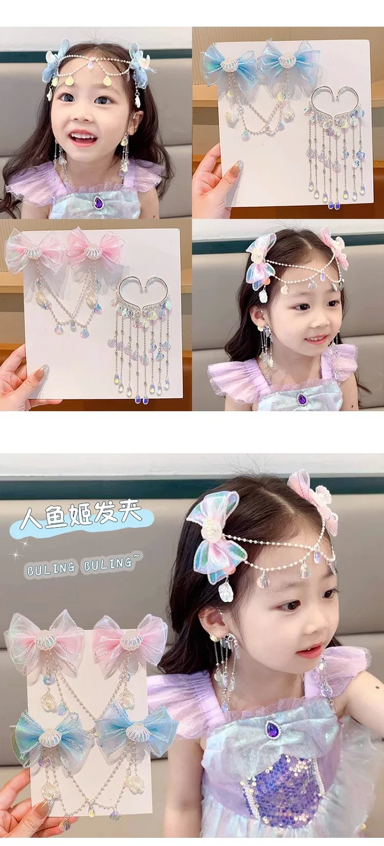 Comprar Cute Mermaid Princess Pearl Tassels Bow Forehead Chain Hair Clip Children Hair Accessories Baby Girl Headwear Birthday Present