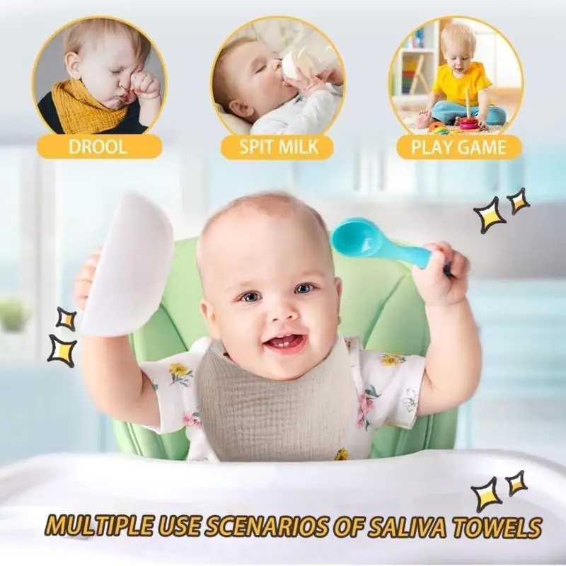 Hechos de algodón de calidad, estos baberos son suaves, absorbentes y delicados con la delicada piel de su bebé, además se pueden lavar a máquina para facilitar la limpieza.