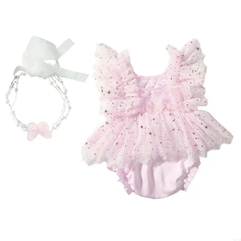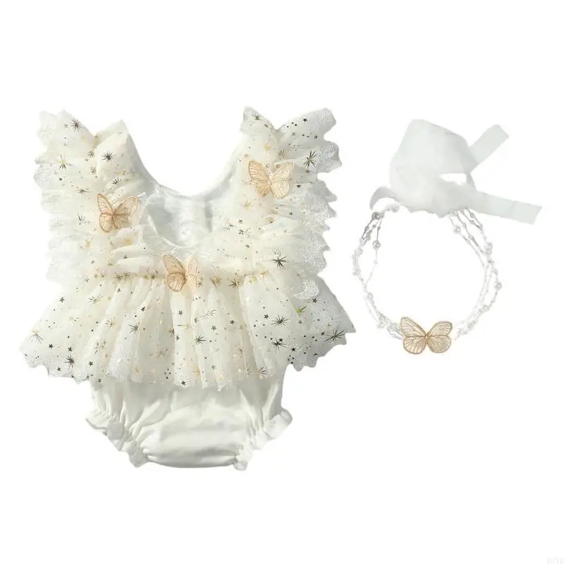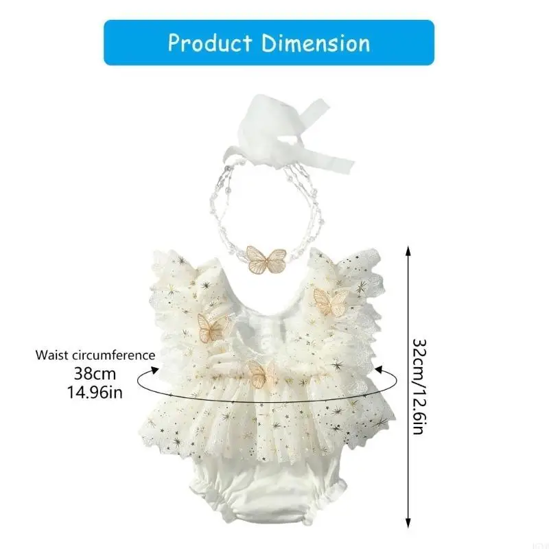 Características:OOTDTYEl conjunto de ropa de fotografía para recién nacidos incluye un precioso mameluco con dije de mariposa, sin mangas y con diadema a juego.