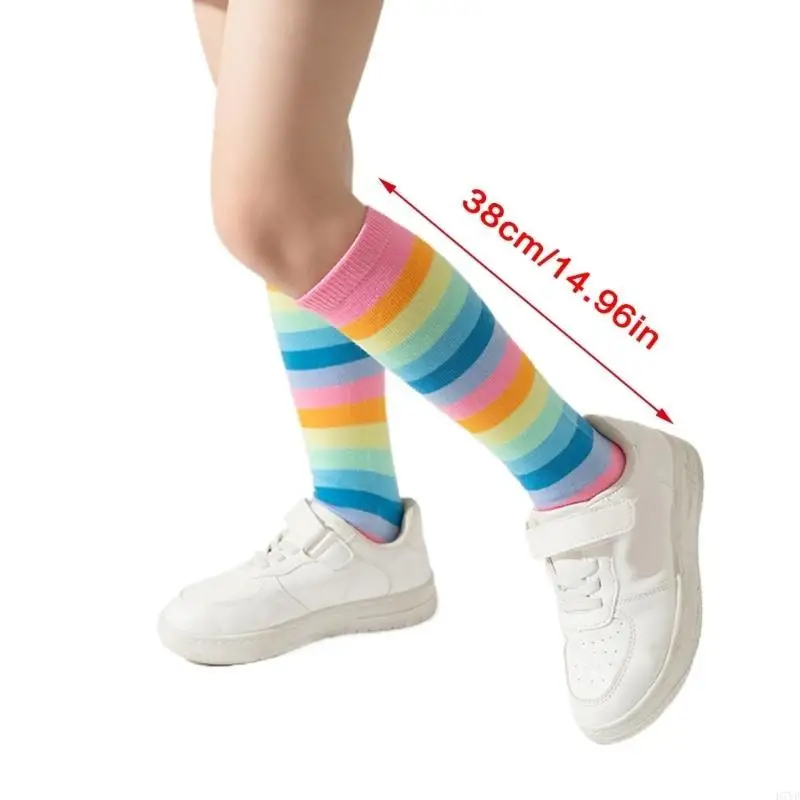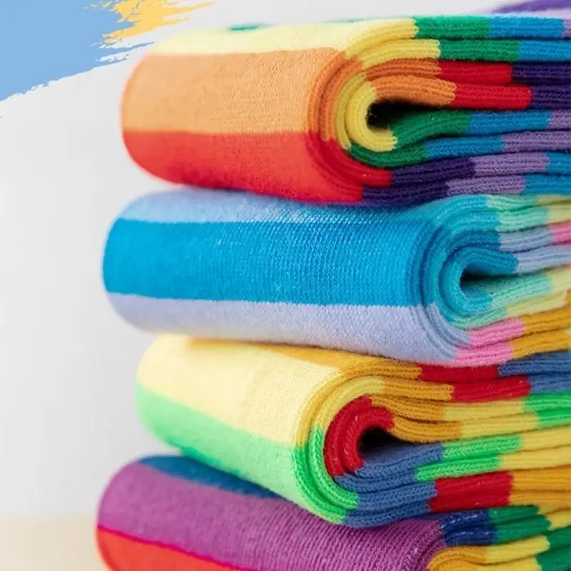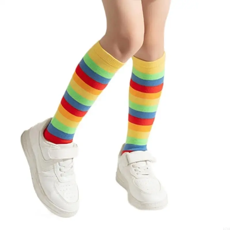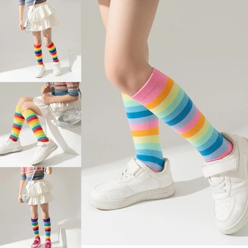 Estos calcetines hasta la pantorrilla cuentan con delicadas rayas de arcoíris, que añaden toques de ternura a cualquier conjunto.
