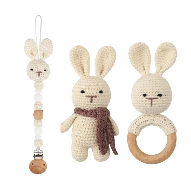 Gran regalo: el juguete mordedor con clip para chupete y sonajero de crochet son adecuados para regalos de bebés, desarrollan su capacidad cognitiva básica y liberan su dentición al usarlo, acompañan la facilidad y duerme bien.