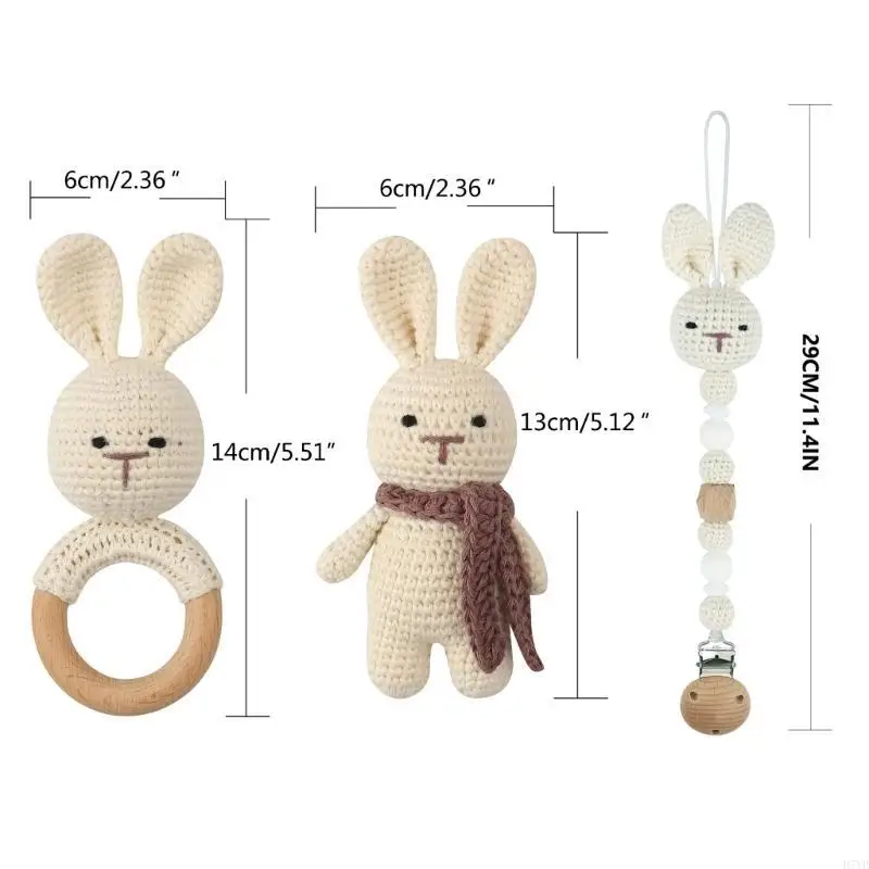Sonajero para la dentición del bebé: el encantador juego de sonajero de cuentas es perfecto para el juguete para la dentición del bebé, muy bien pulido sin rebabas, tecnología de crochet única que el material de algodón elegante y seguro puede proteger bien las manitas del bebé y la salud mientras facilita la dentición.