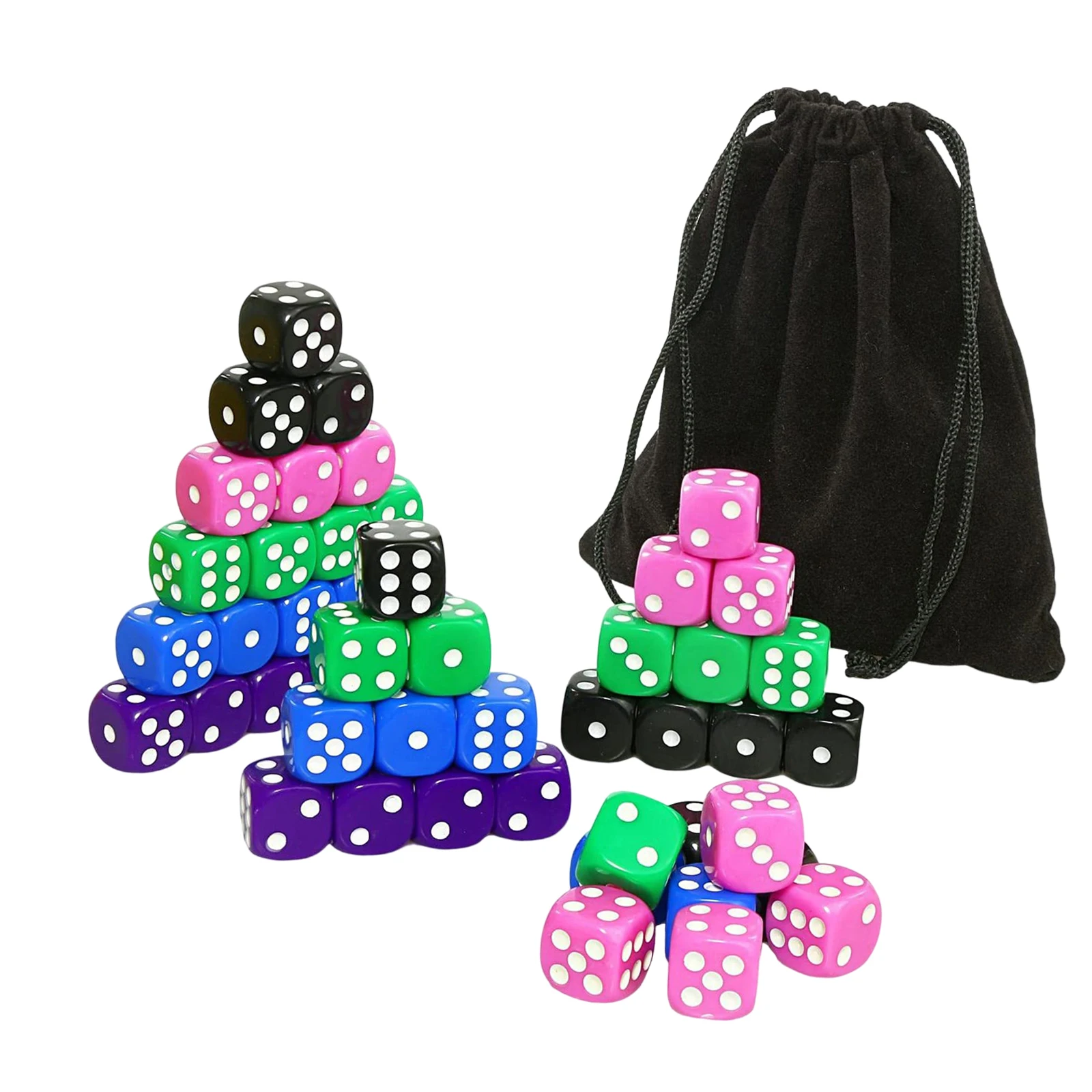 EMBALAJE: Recibirás 70 dados y una bolsa de lana negra.