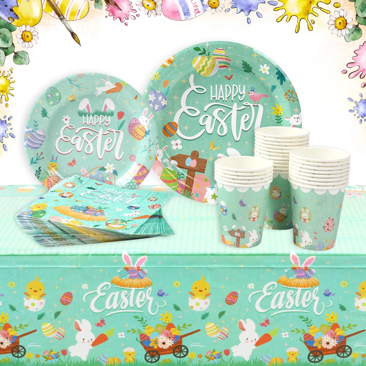 Decoración de fiesta temática de Pascua, vajilla desechable de conejo bonito para fiesta, mantel para Baby Shower, suministros para fiesta de feliz cumpleaños y Pascua