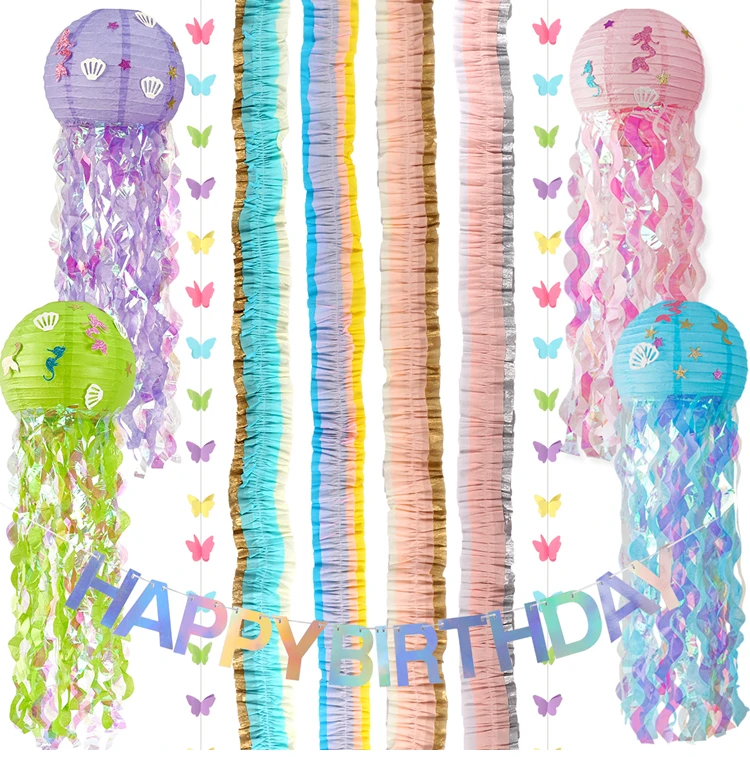 Comprar Decoración de fiesta temática de sirena, linterna de papel de medusas DIY, decoración de fiesta bajo el mar, sirena, cumpleaños, Baby Shower, Litte