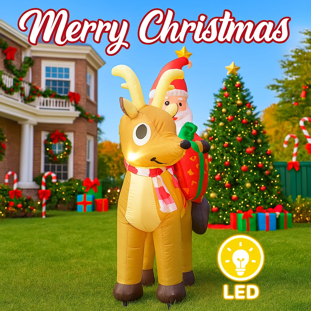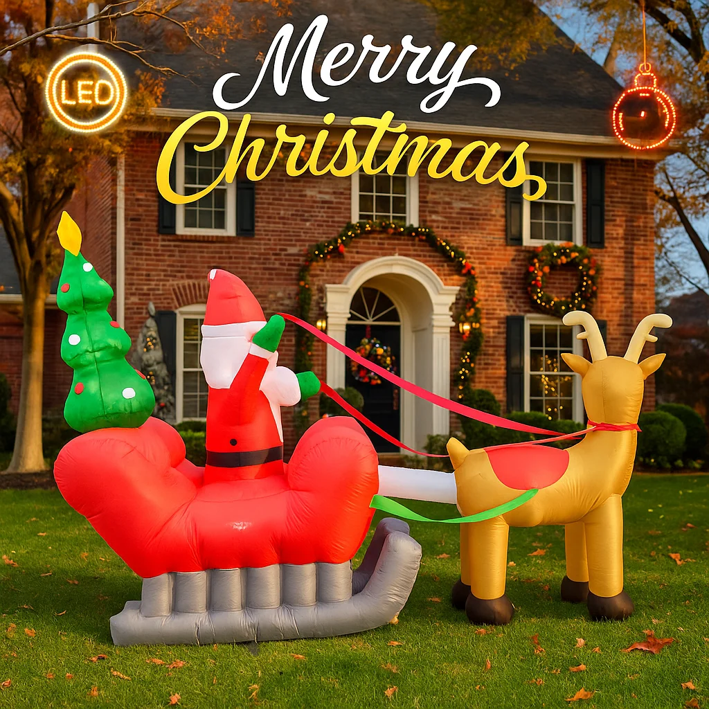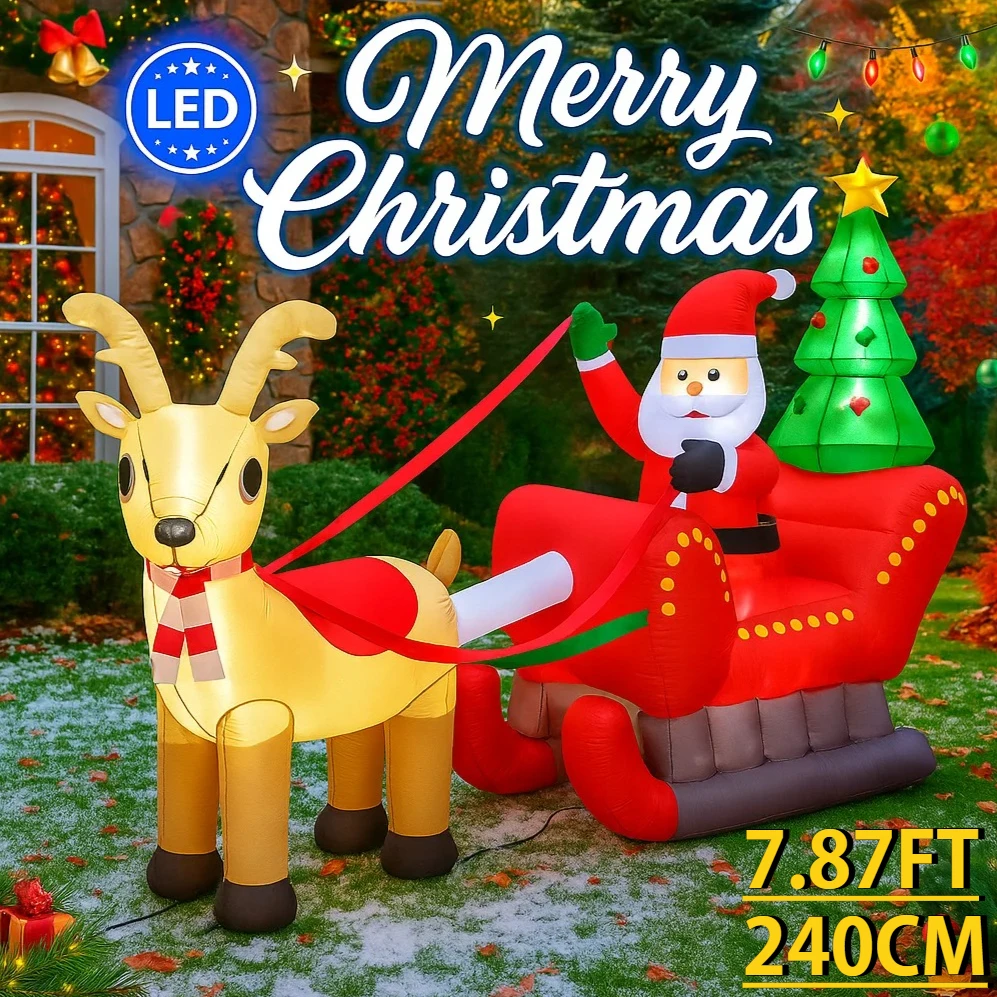 Comprar Decoración inflable para vacaciones al aire libre, juguete de Papá Noel, trineo de Reno con luces LED, adorno de decoración de patio de Navidad, 7,87 pies