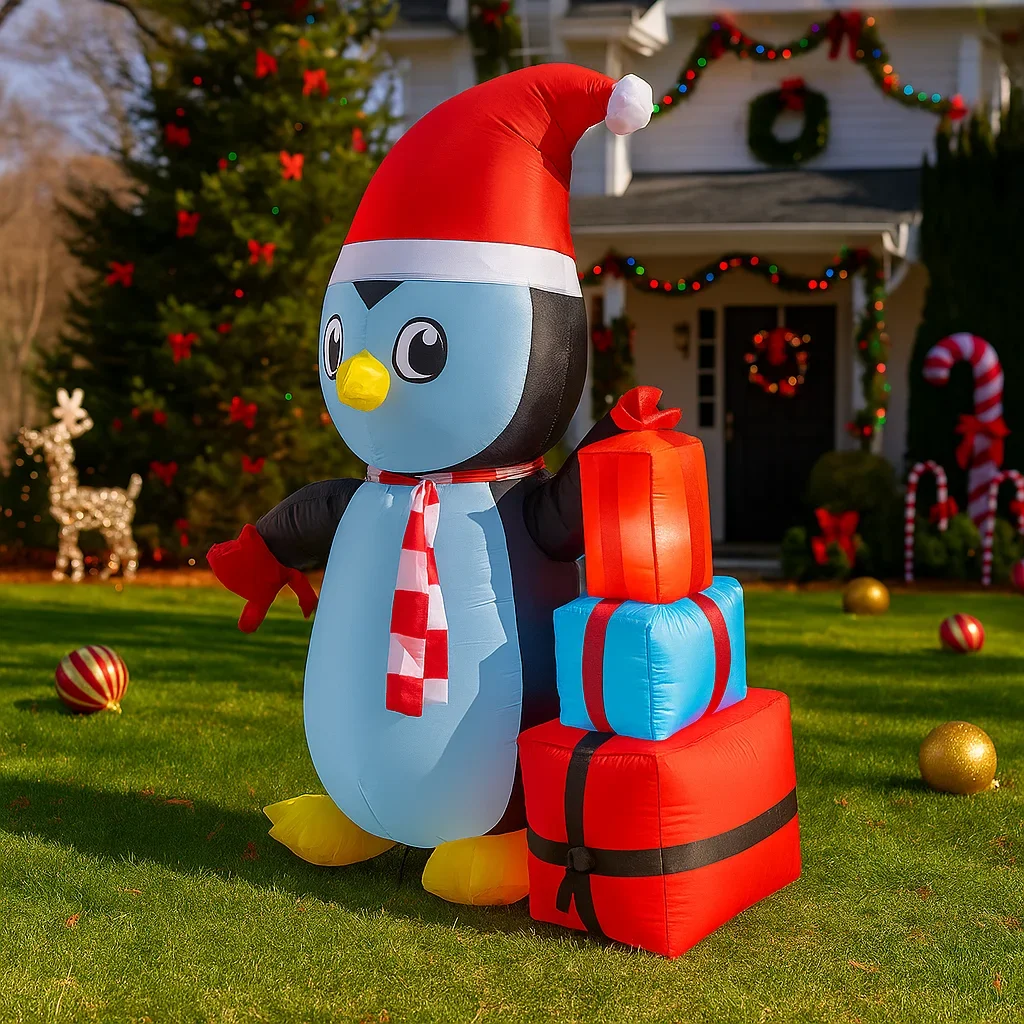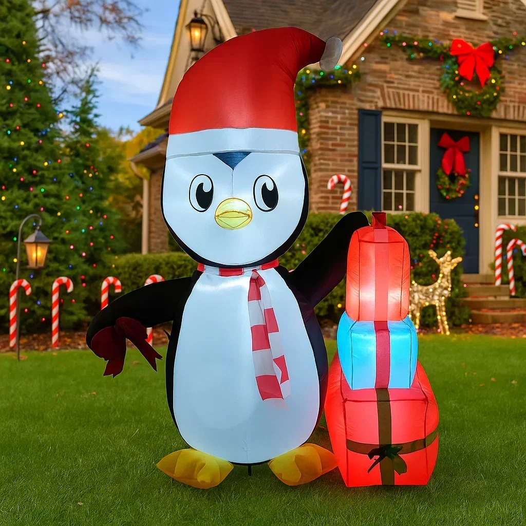 Decoración navideña al aire libre de 4,9 pies, regalo de pingüino, decoración navideña inflable, adornos de patio, luces, juguetes para el hogar, decoración, explosión