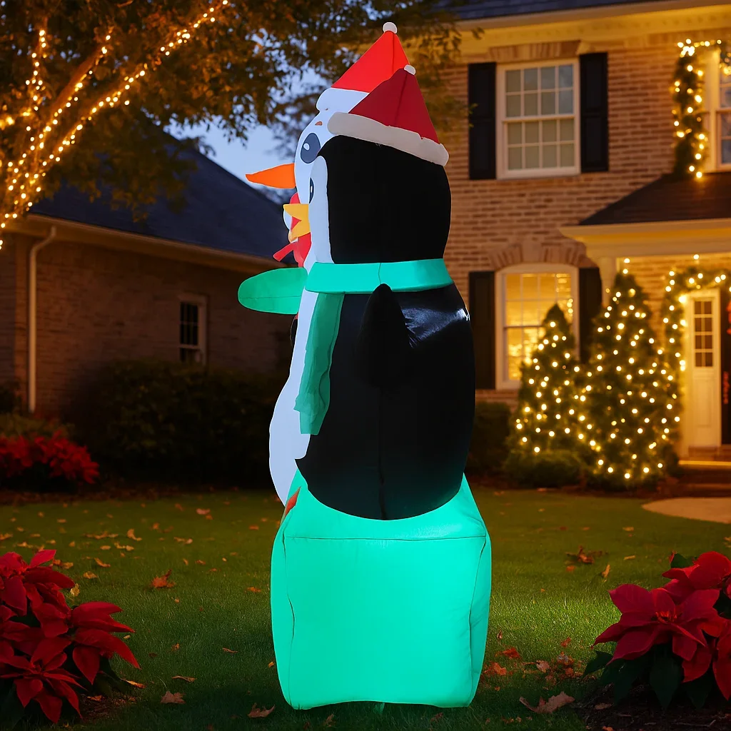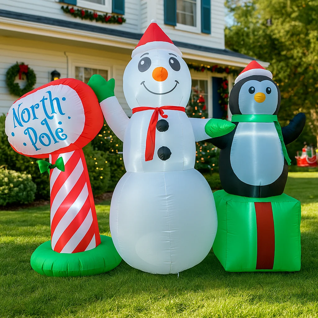 Decoración navideña al aire libre de 7,2 pies, muñeco de nieve, pingüino, poste Norte, decoración inflable para fiesta de patio, luces de adorno de Navidad, juguete para el hogar