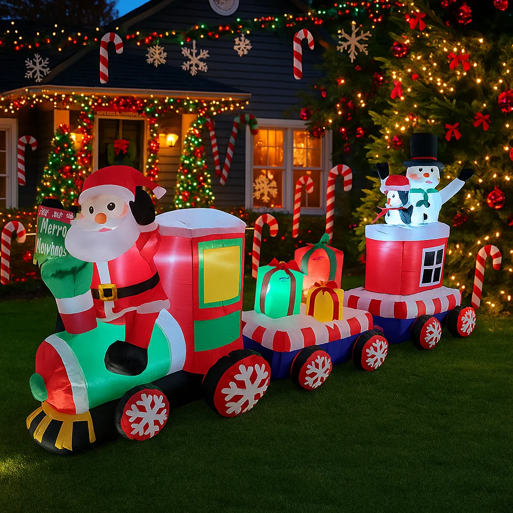 Decoración navideña al aire libre de 7,8 pies, tren de Papá Noel, decoración inflable para fiesta de Navidad, adornos de patio, luces, juguetes para el hogar, utilería