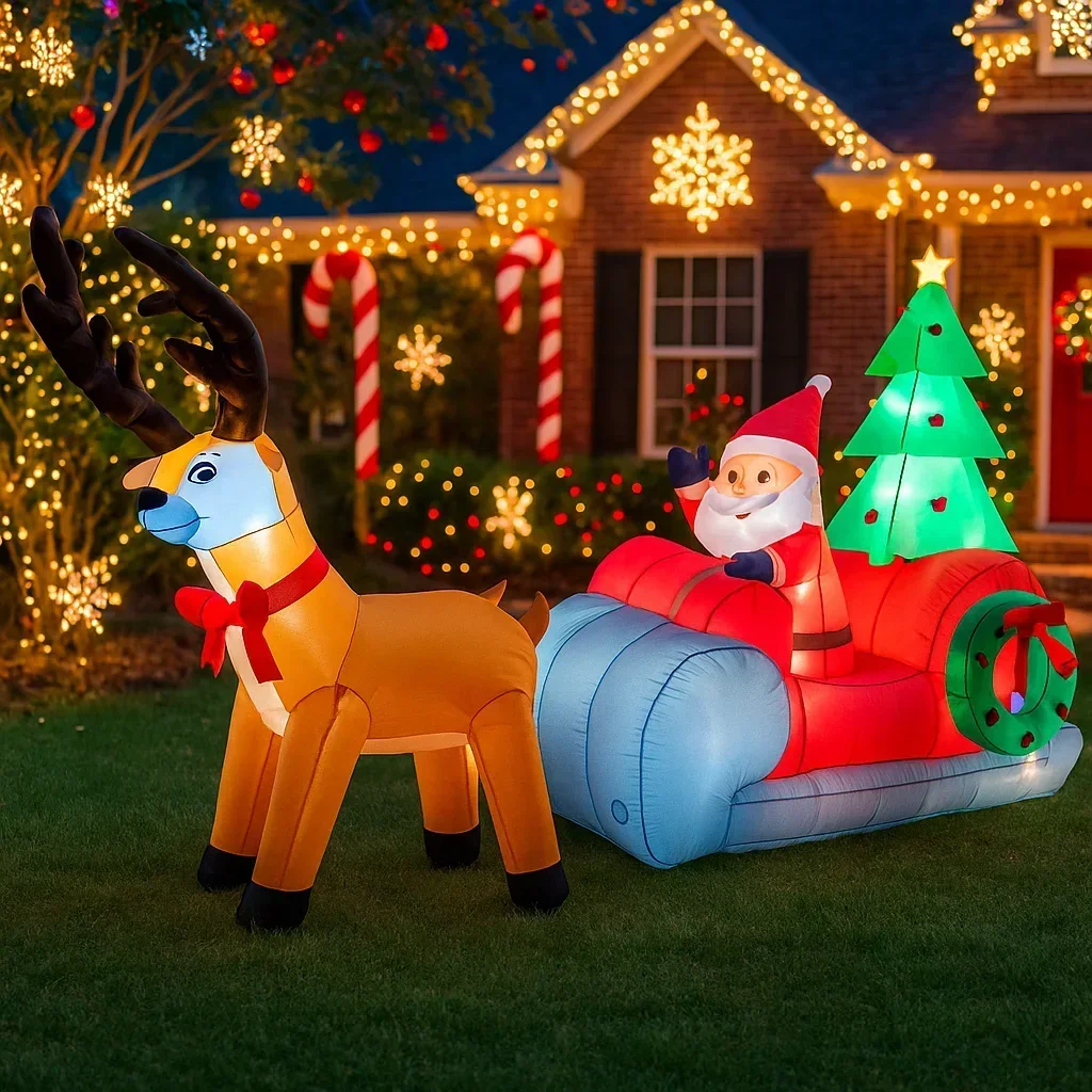 Decoración navideña al aire libre de 8,5 pies, Reno, Papá Noel, inflable, decoración de fiesta de patio de Navidad, adornos navideños, luces, juguete para el hogar