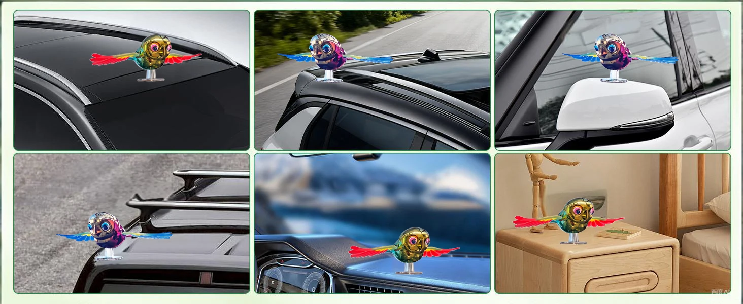 Características del producto: puede decorar cascos, espejos retrovisores de automóviles, espejos retrovisores de motocicletas y otras posiciones visibles del viento; velocidad de más de 30 yardas, las alas de los pájaros pueden volar, todo el automóvil es inteligente, ¡más interesante!