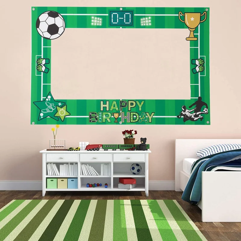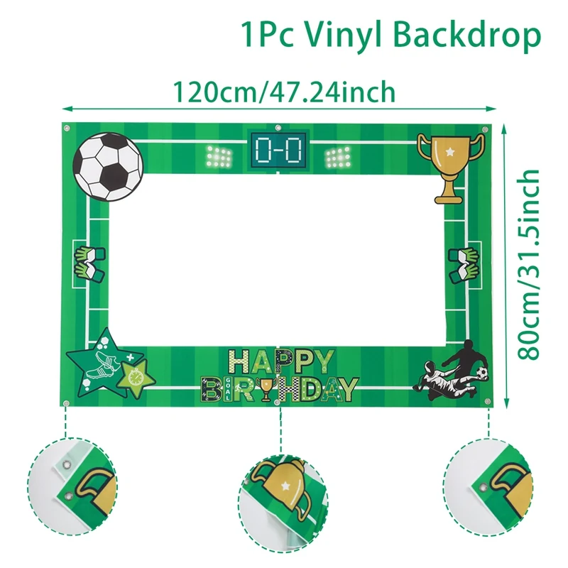 Decoraciones de fiesta de cumpleaños de fútbol, accesorios de fotos de vinilo, marco de fotomatón temático de fútbol, decoraciones de fiesta deportiva de cumpleaños para niños