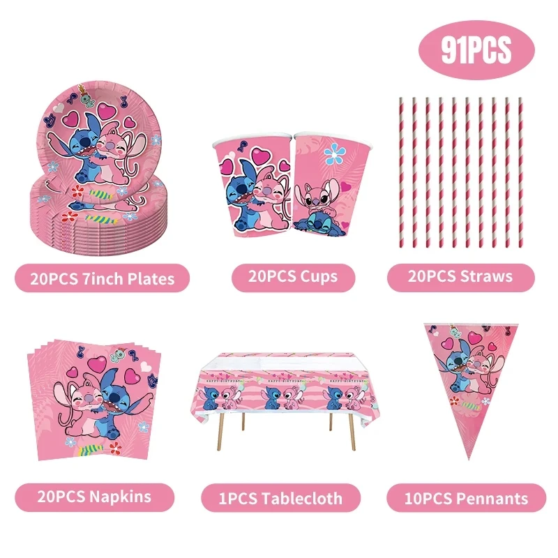 Lilo y Stitch Decoraciones para fiesta de cumpleaños Feliz cumpleaños Stitch Set Platos Tazas Pajitas Mantel Vajilla Globos Suministros
