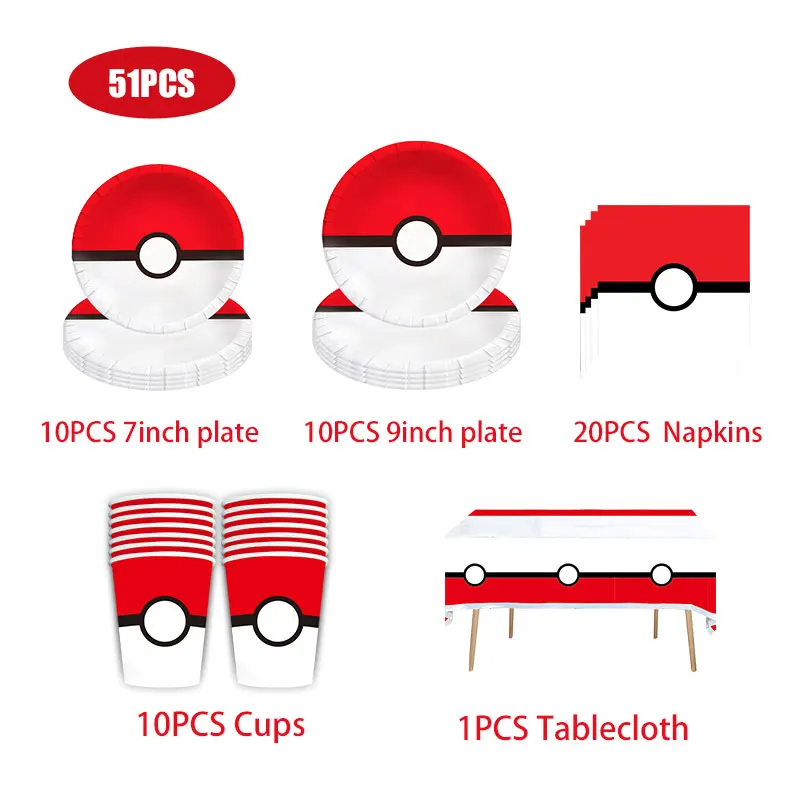 Decoraciones para fiesta de cumpleaños de Pokémon, vajilla, mantel, platos, servilleta, pancarta, decoración de cumpleaños, globos, regalos para niños