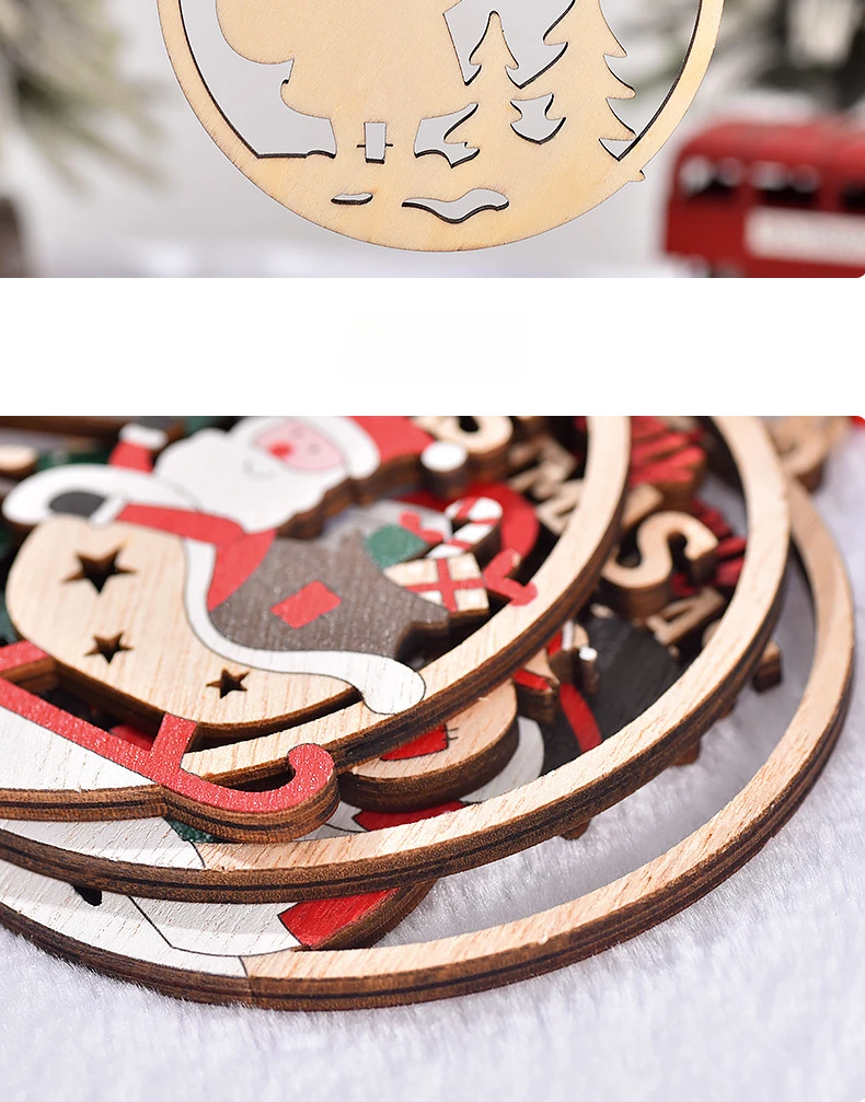 Decoraciones navideñas ahuecadas para personas mayores, colgantes de madera para árboles de Navidad, accesorios de ambiente festivo para el hogar, 15 piezas