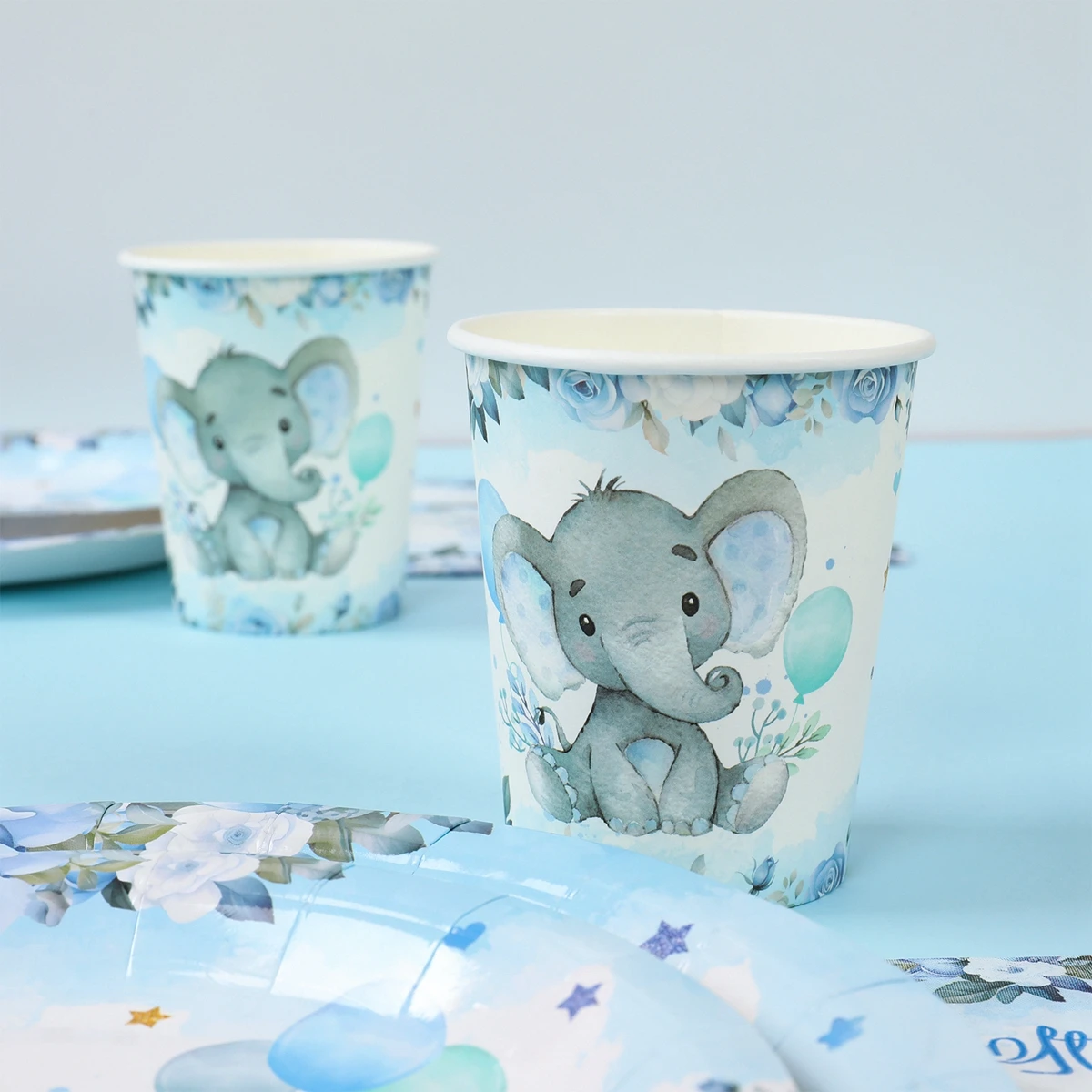 Decoraciones de papel para Baby Shower, platos de elefante azul, vasos, servilletas para niños y niñas, recuerdo de fiesta de revelación de género de cumpleaños