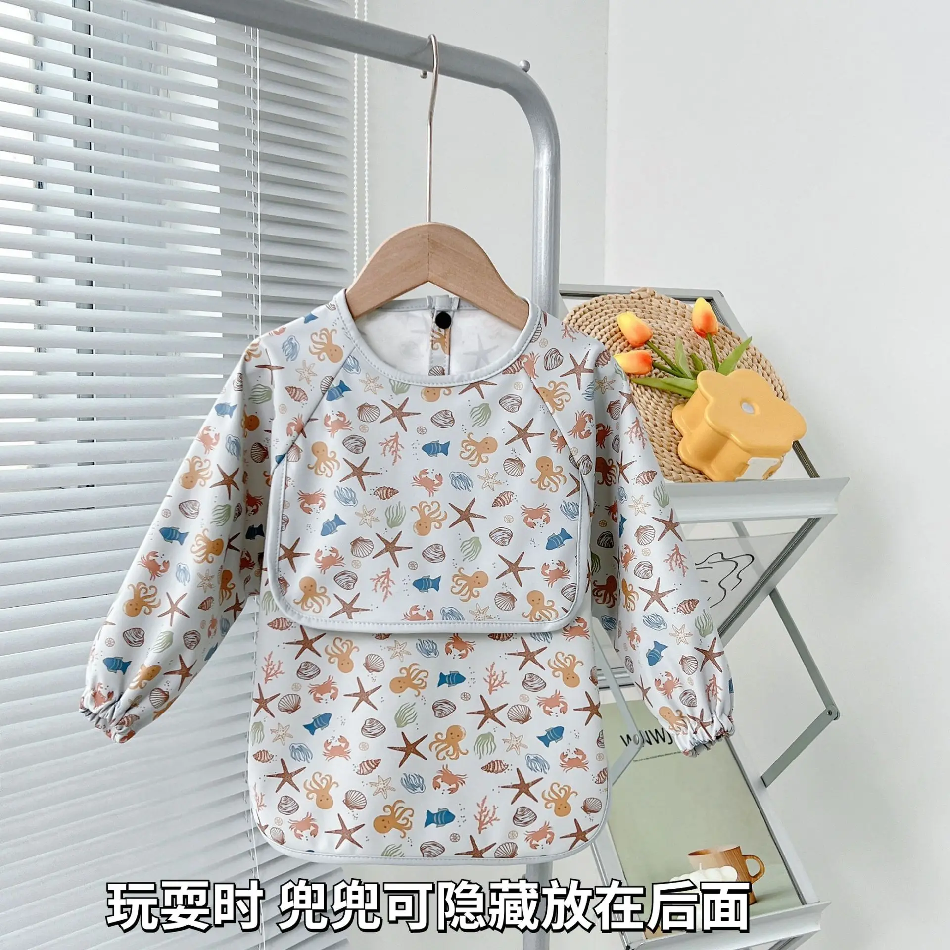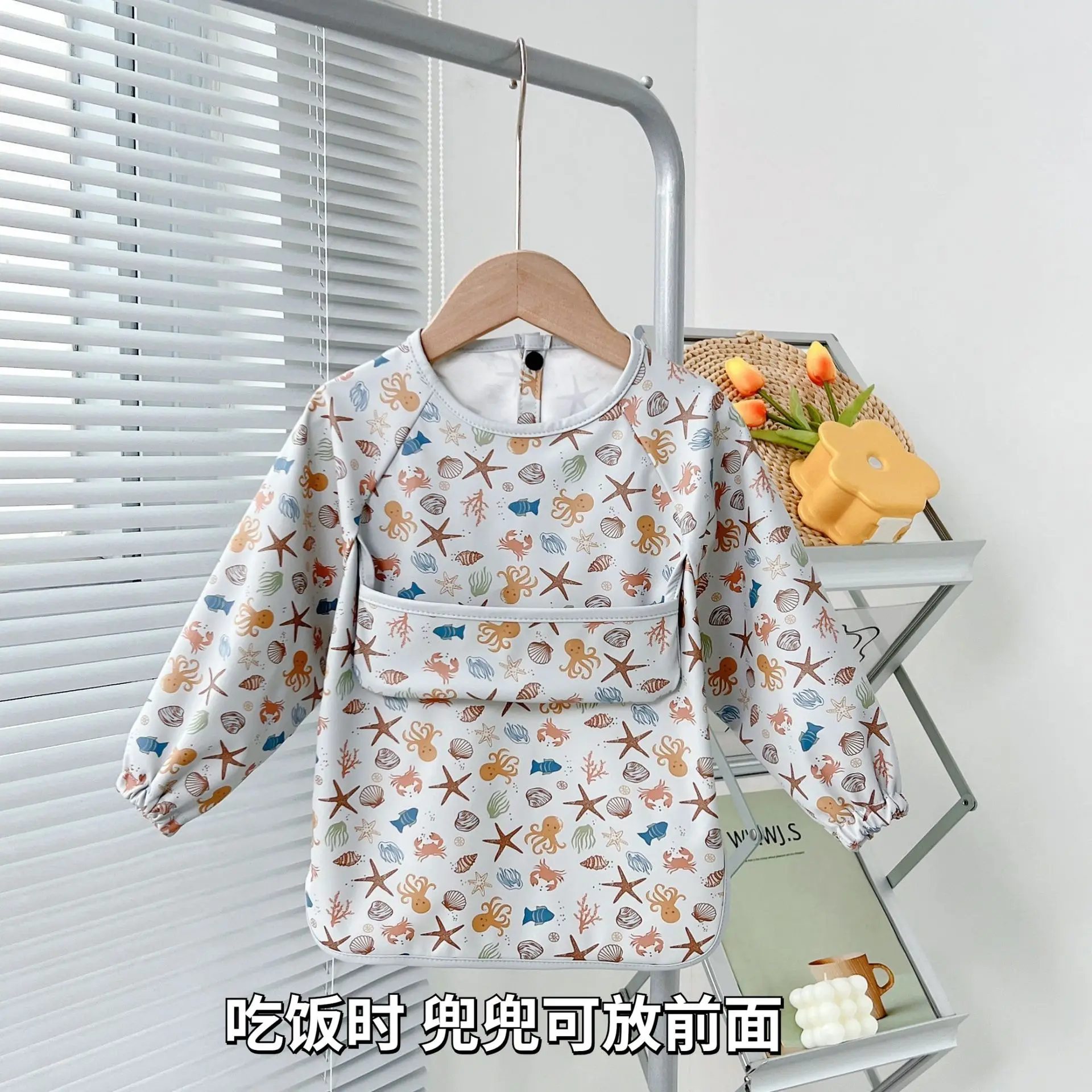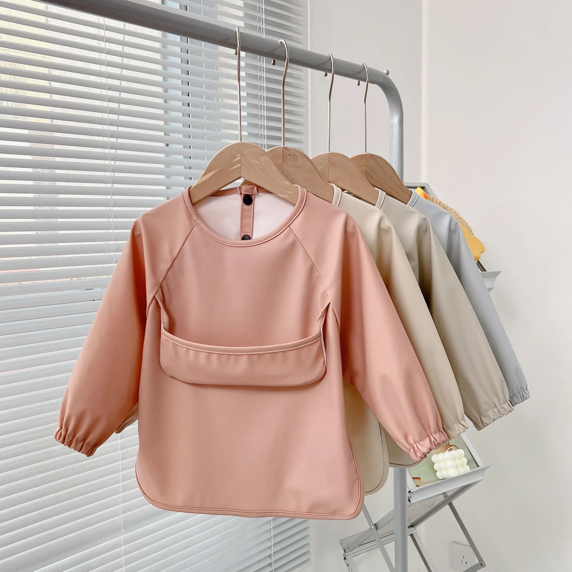 Comprar Delantal de alimentación impermeable suave y ajustable para niños, bebé, mangas largas, pintura, paño para comer, cubierta de comida, niño y niña