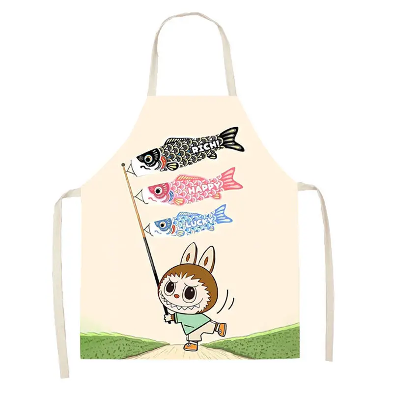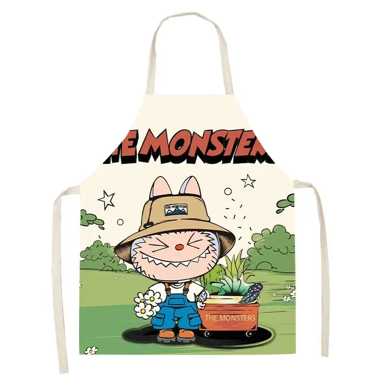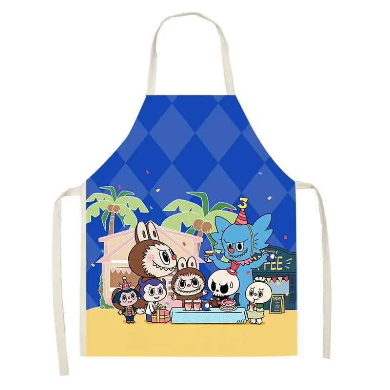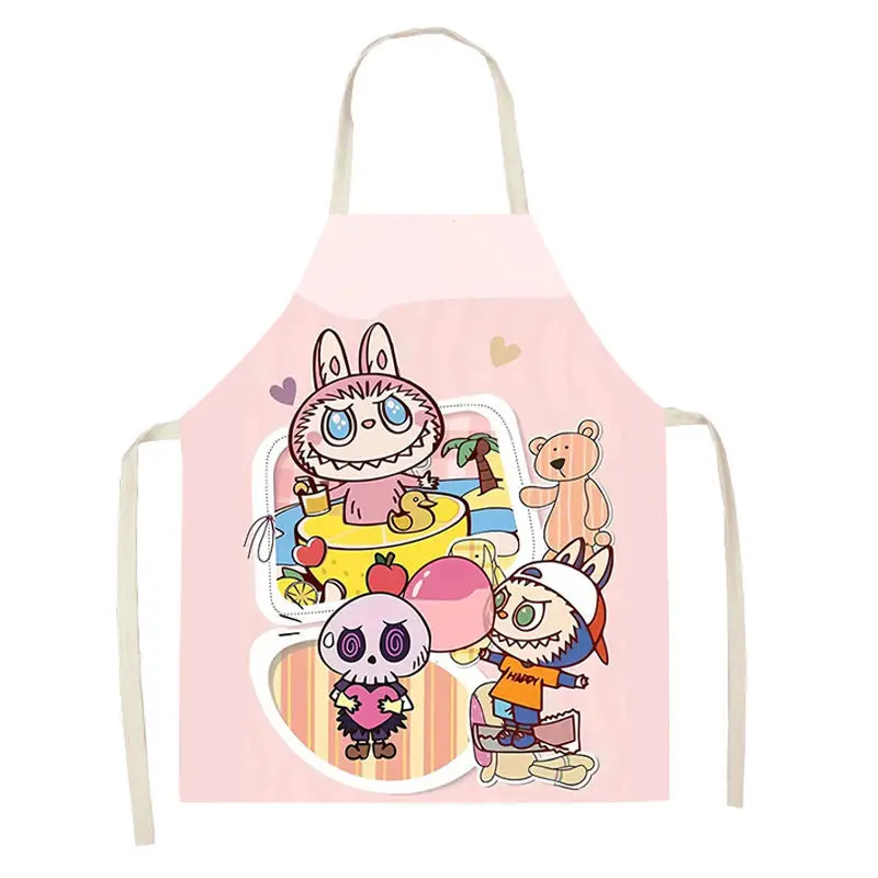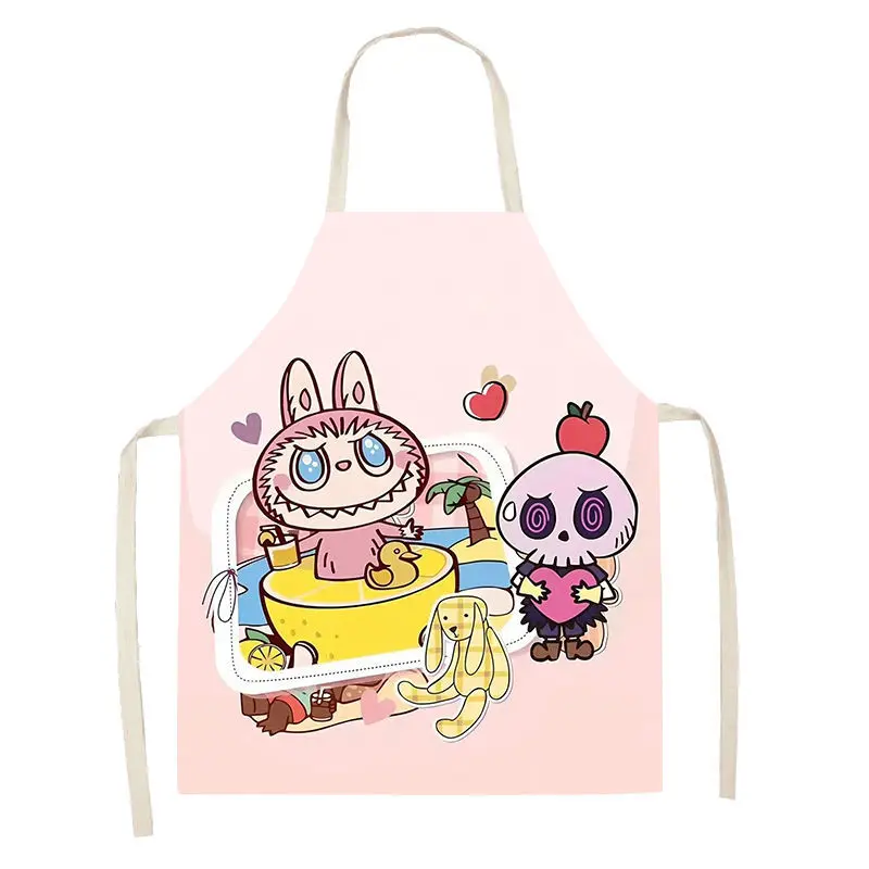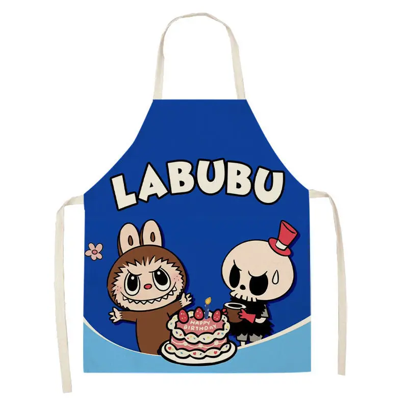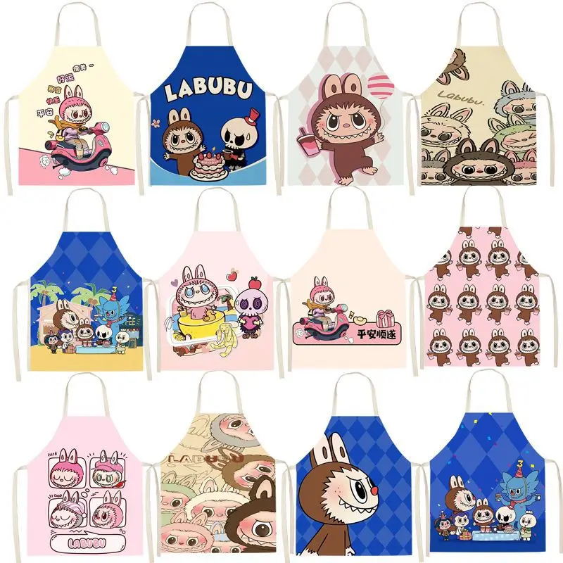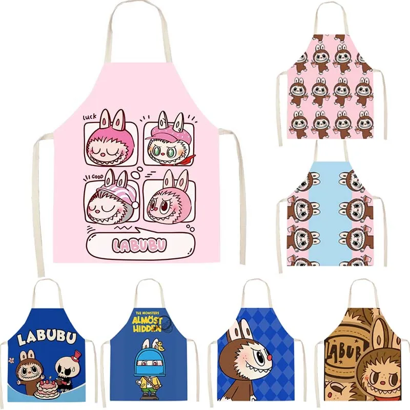 Delantal LABUBU para cocina casera, impermeable y a prueba de aceite, ropa de trabajo de cocina estilo pareja masculina y femenina para adultos, ligera y delgada