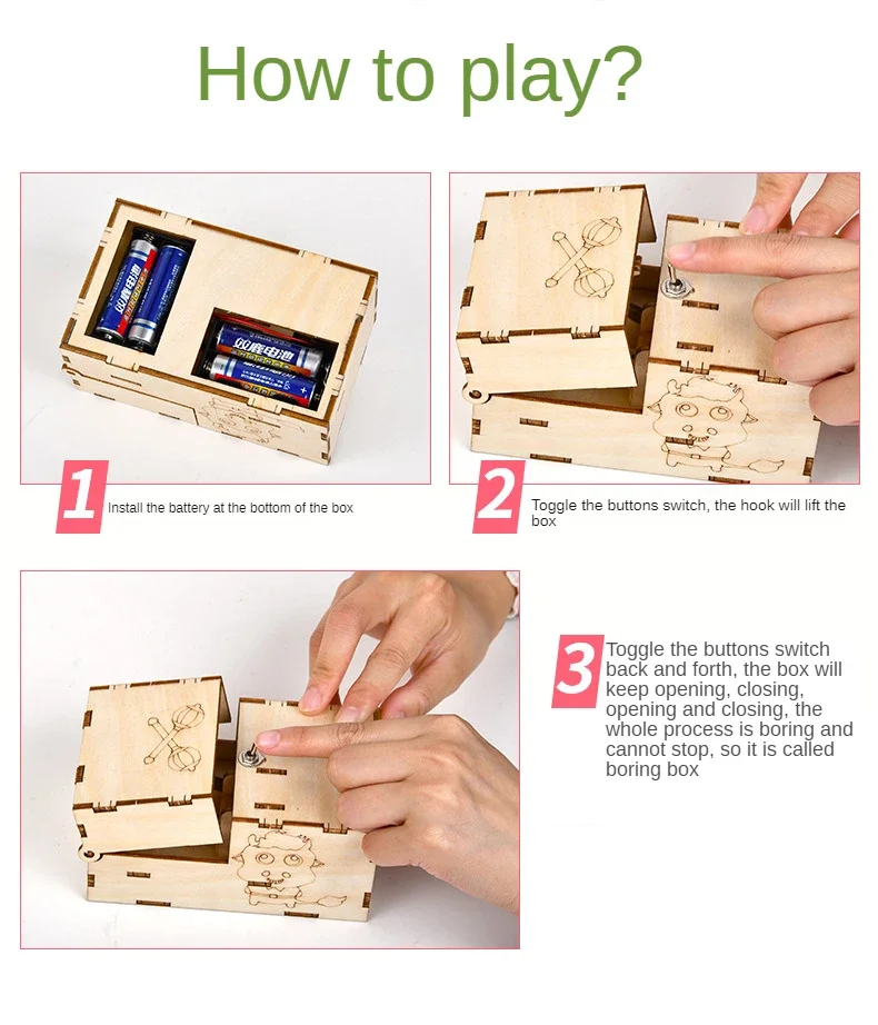 100% nuevo y de alta calidad ¿Quieres ser diferente a los demás? ¡Consigue una de estas creativas cajas inútiles como regalo para tus amigos y familiares! Esta es la caja inútil trasera. Una vez que presione el interruptor de encendido, la caja se abrirá y se apagará sola, este viene de nuevo como se puede ver en la imagen. Colóquelo en su mesa de centro o escritorio y espere a que la curiosidad haga que la víctima tras la víctima lo encienda, cada uno se encontrará con el dedo meñique apagando la caja. El Kit de caja inútil: el kit de ciencia más tonto que nunca has visto. ¡Una caja totalmente inútil que proporciona diversión sin fin! Cada vez que gira el interruptor en la caja inútil, ¡un dedo meñique sale y se apaga solo! Tenga en cuenta que no es un producto terminado, debe hacerlo usted mismo cuando lo reciba. Especificaciones: Material: Acrílico Dimensiones: app.14cm x 8cm x 6cm/5,11 ''x 3,15'' x 2,36'' Alimentado por: 2 pilas AA (no incluidas) Color: Negro, como se muestra en las imágenes Cantidad: 1 unidad Nota: 1. Por favor, permita un error de 1-3MM debido a la medición manual. Por favor, asegúrese de que no le importa antes de pujar. 2. a la diferencia entre diferentes monitores Debido, es posible que la imagen no refleje el color real del artículo. ¡Gracias! El paquete incluye 1 caja inútil