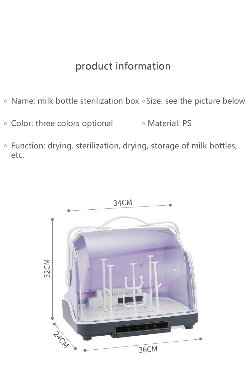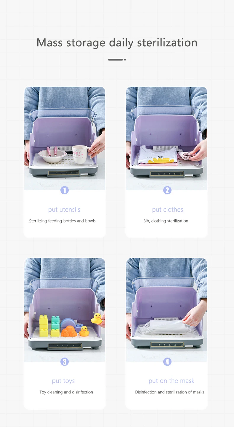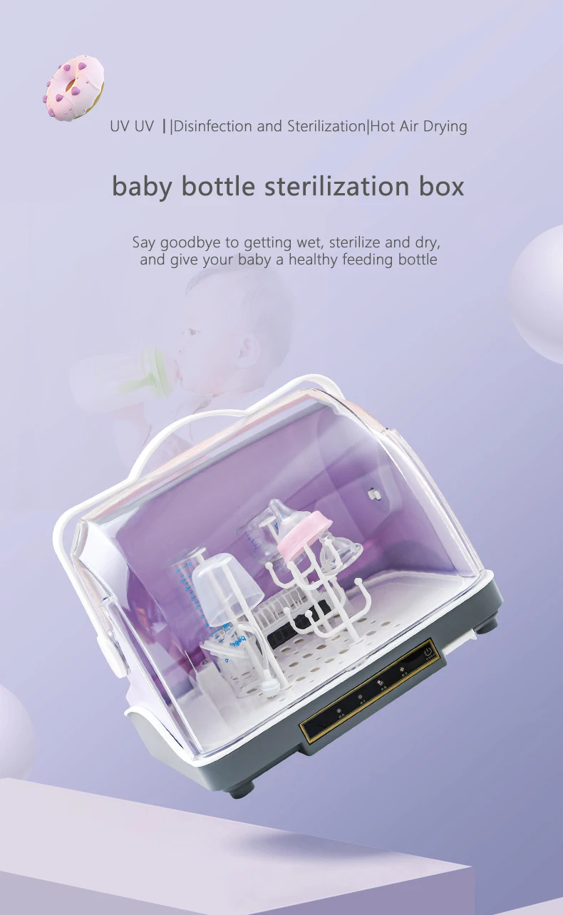 Desinfectador de biberones, cinturón de desinfección UV, gabinete de desinfección de secado, vajilla para bebé, almacenamiento de biberones 3 en 1