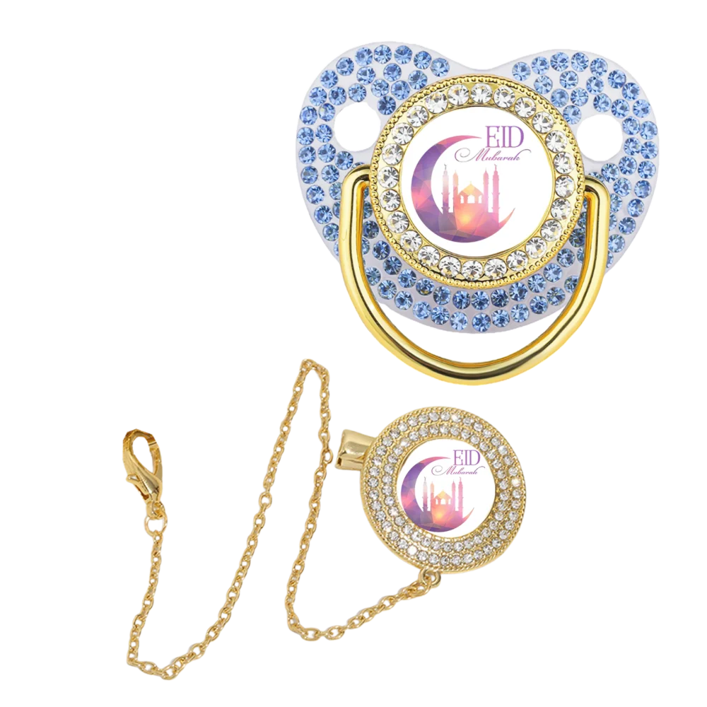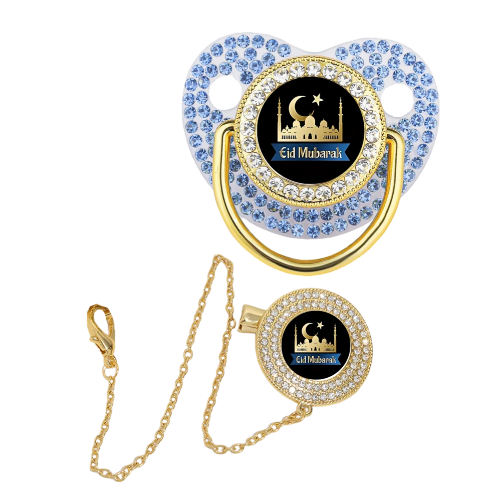 Chupete deslumbrante con estampado musulmán y clip de cadena para chupete. Un chupete de silicona para bebé sin bisfenol. Un regalo de alimentación para niños y niñas recién nacidos.