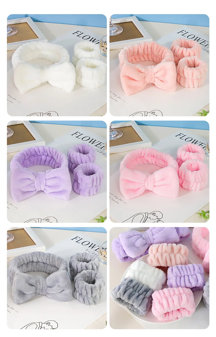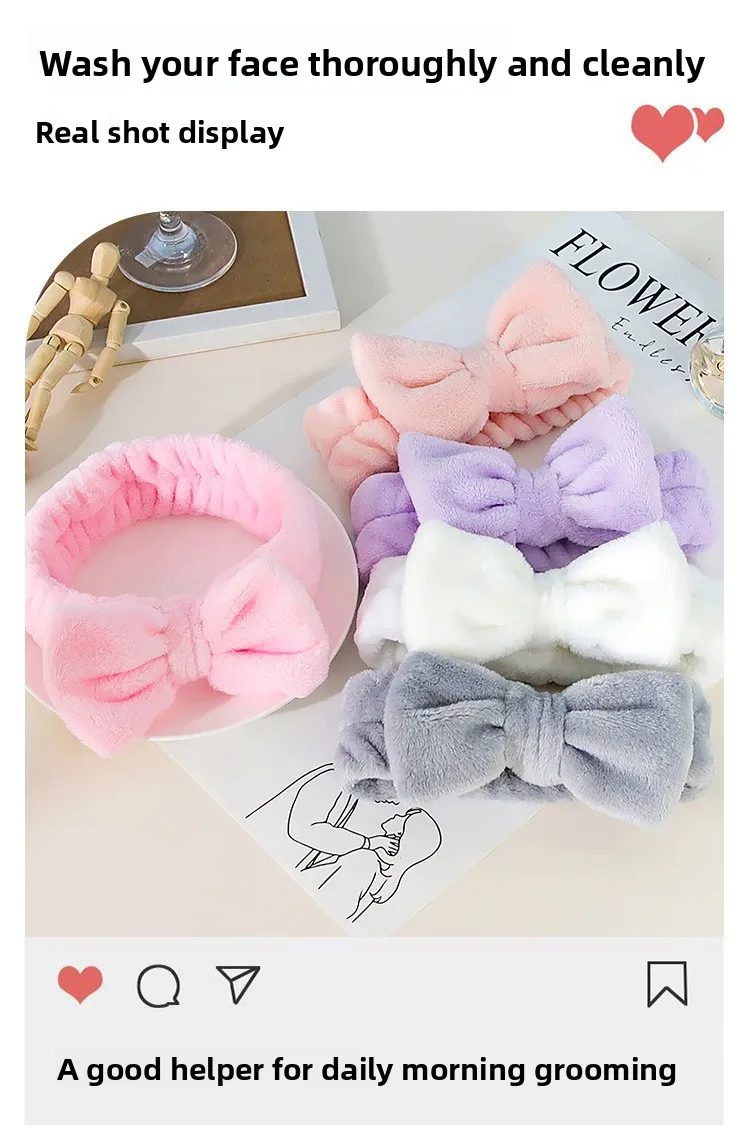 Diadema absorbente para el cabello con lazo de mariposa para mujer, pulsera ancha de lana Coral, accesorio para el cabello