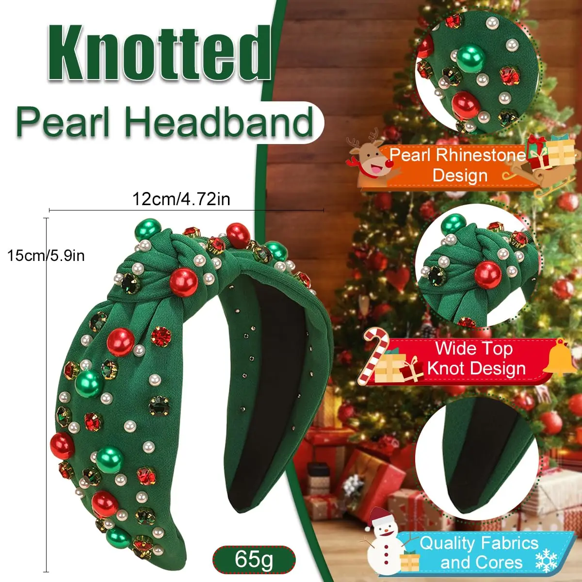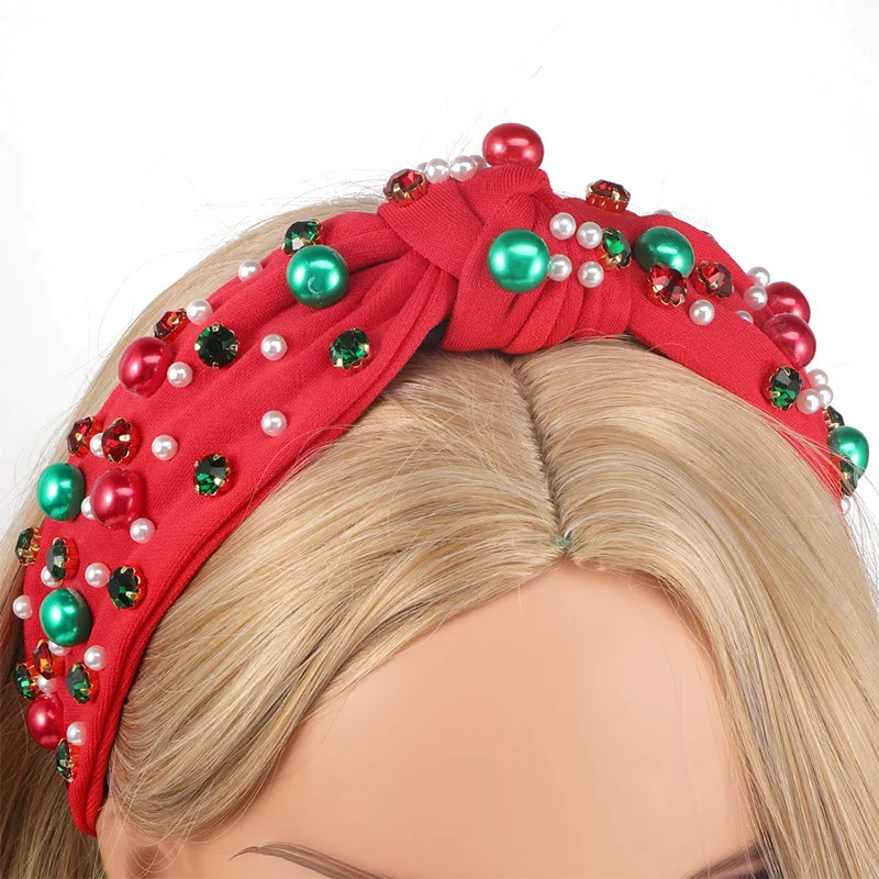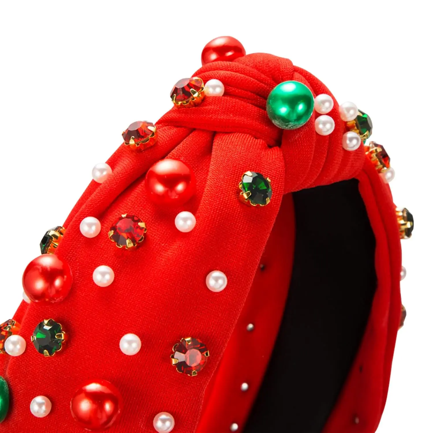 Diadema con adornos de cristales y perlas para niña, diadema anudada, regalo de Navidad