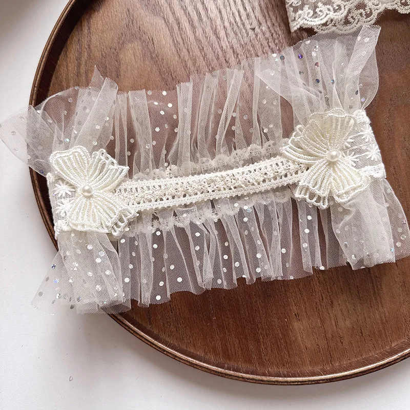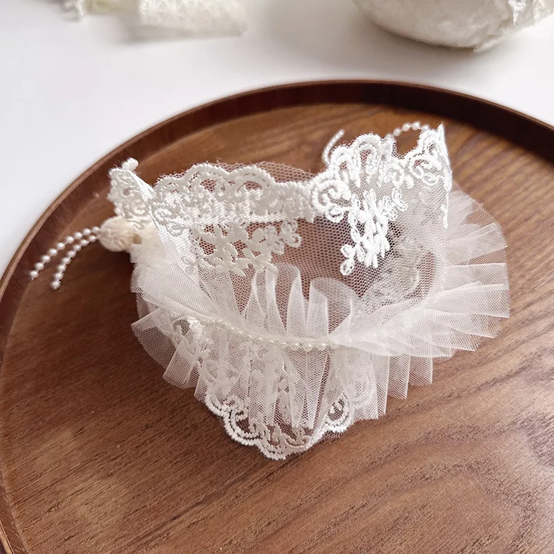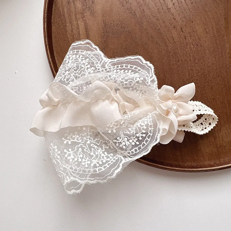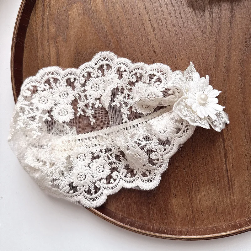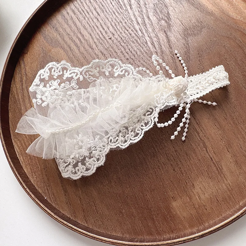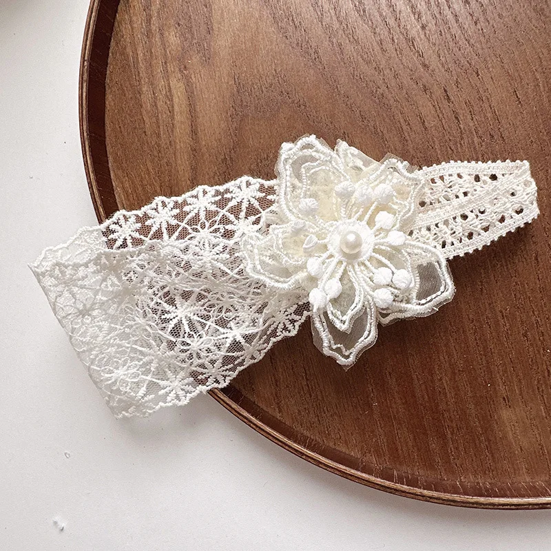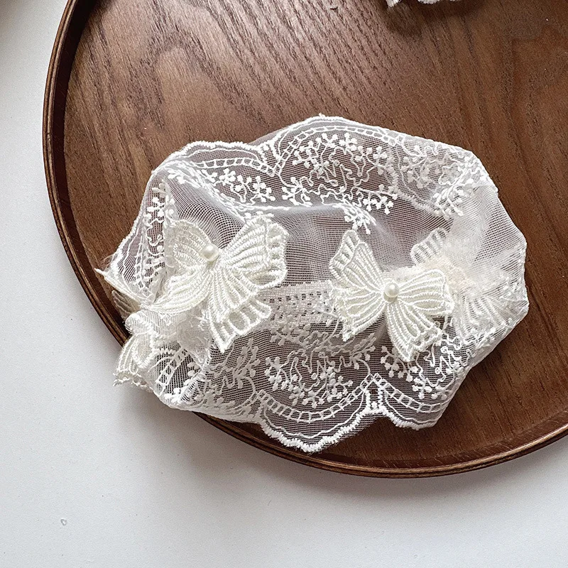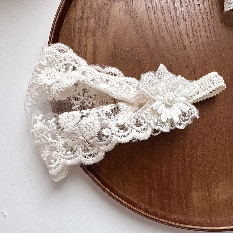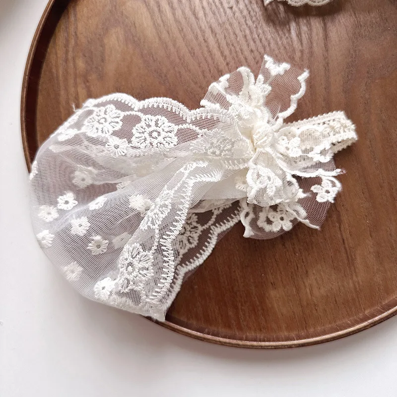 Diadema ancha y suave para bebé, diadema francesa Vintage con lazo de Jacquard, diadema de encaje Floral para recién nacido, accesorios de fotografía para niños pequeños
