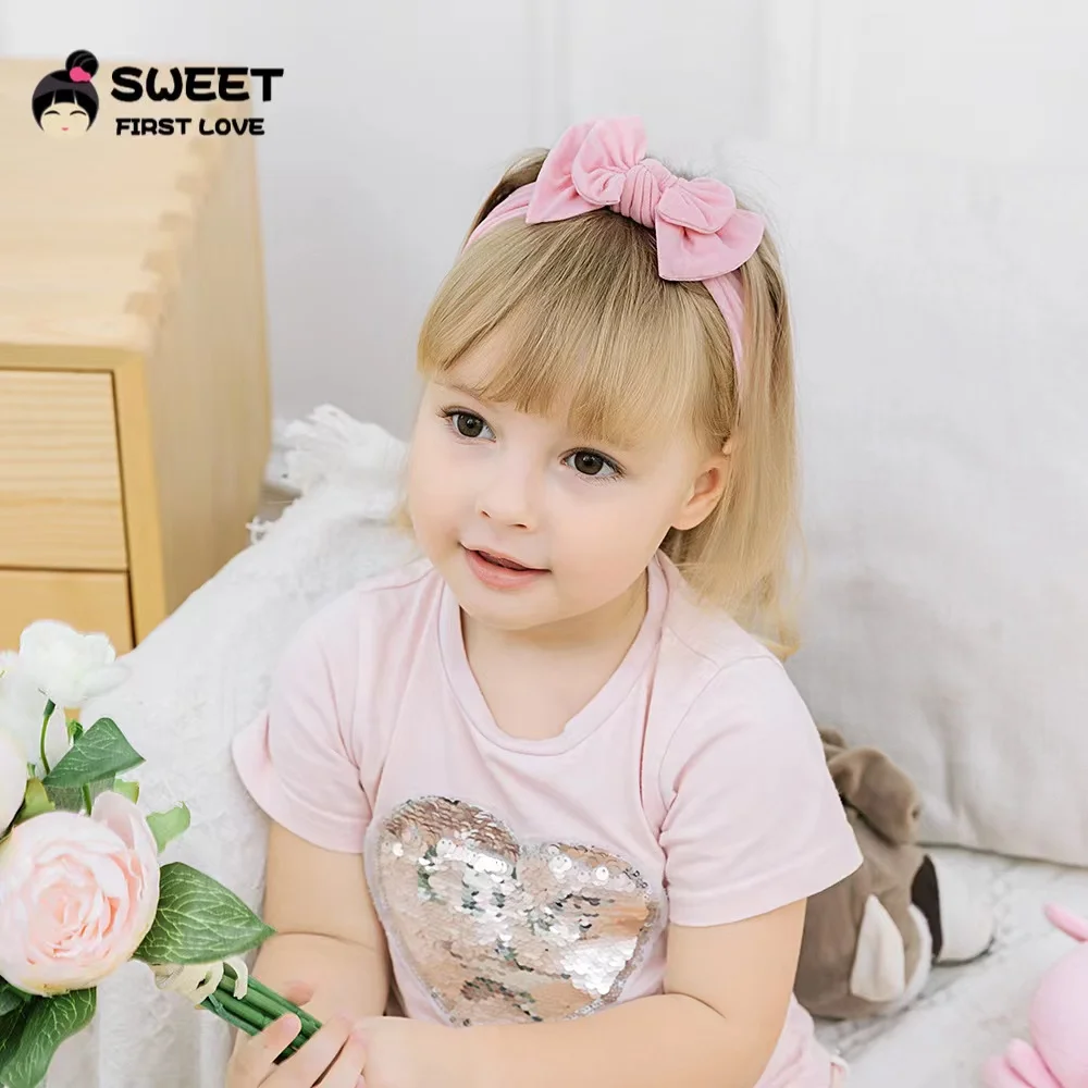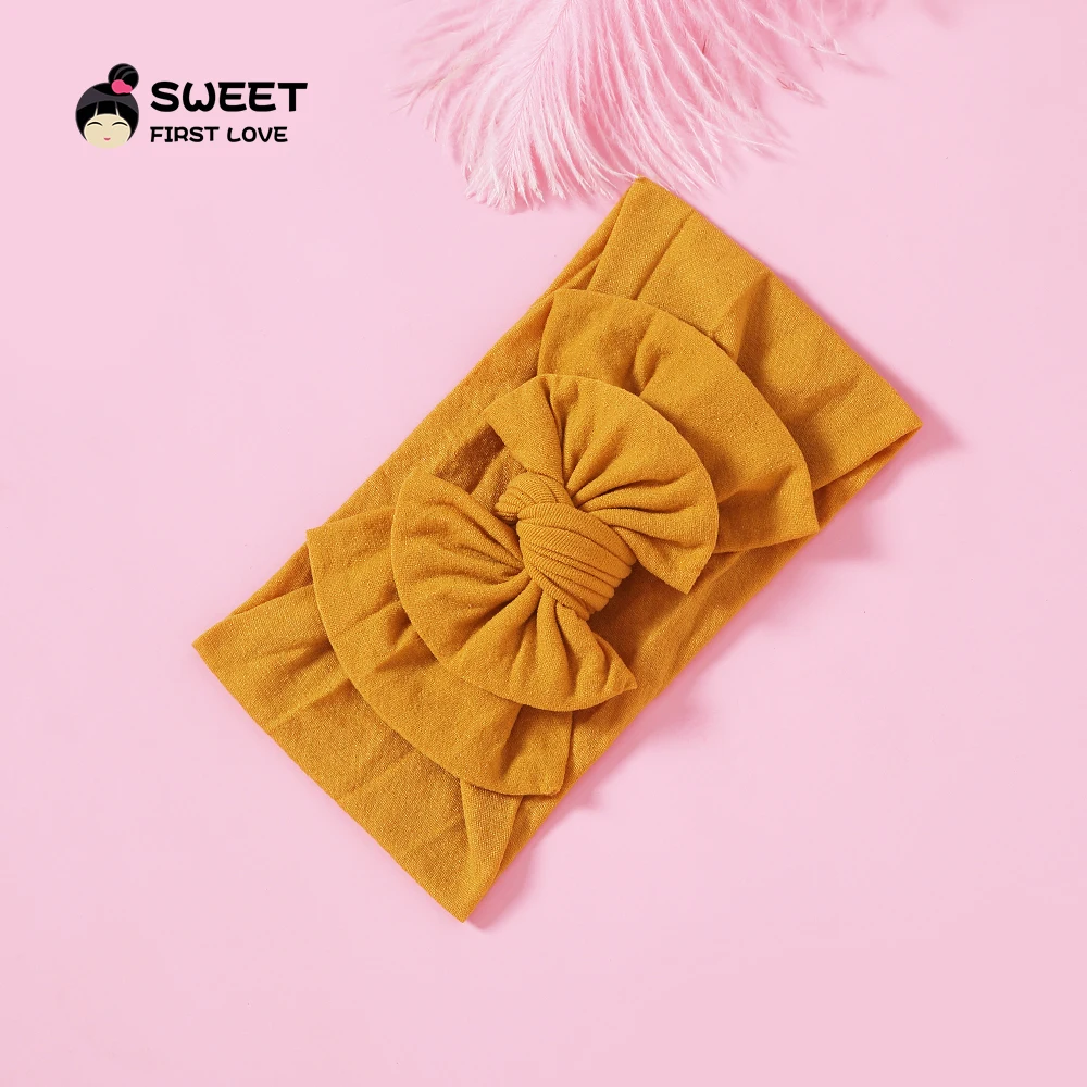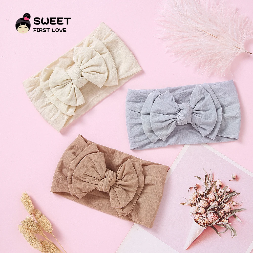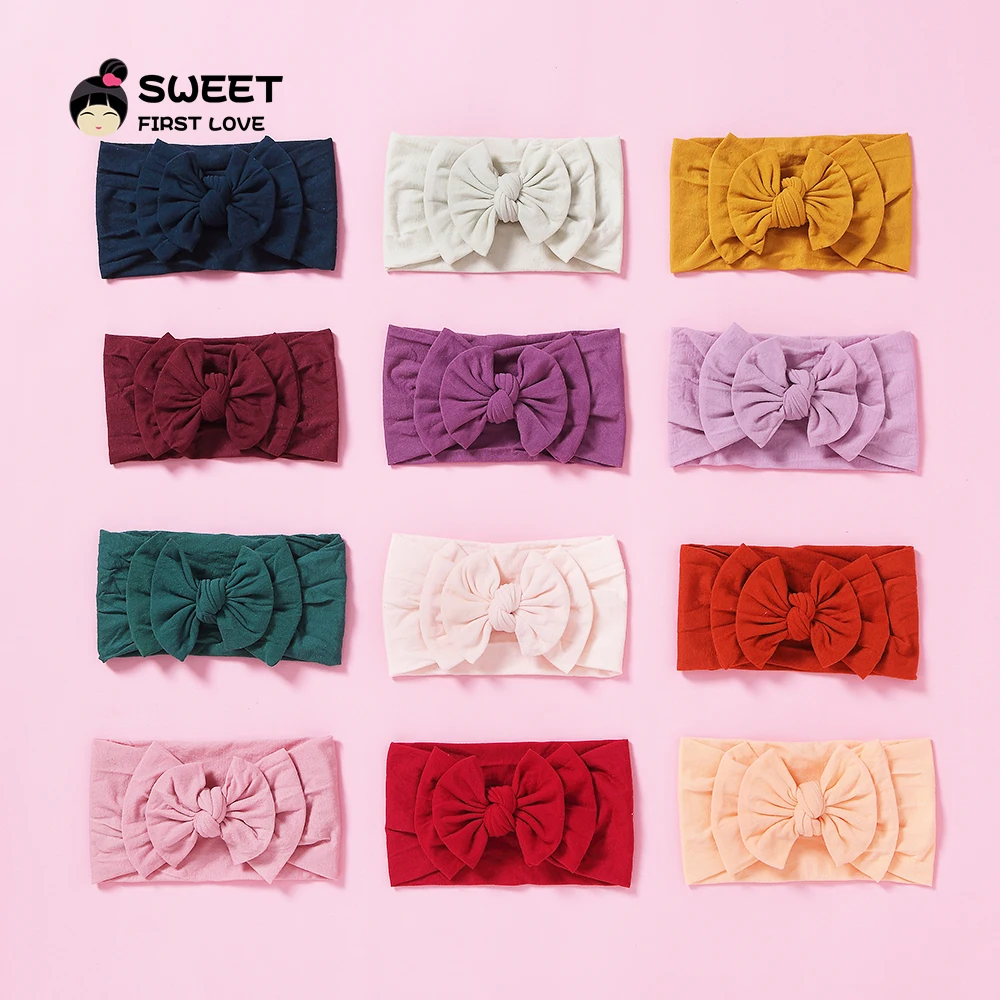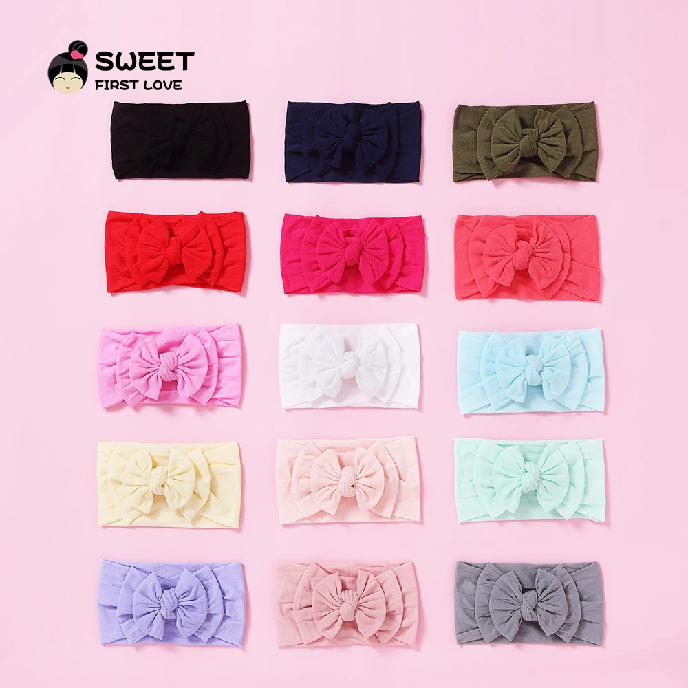 Comprar Diadema para bebé y niña recién nacida, bandanas con lazo sólido, turbante suave de nailon elástico, accesorios para el cabello de bebé