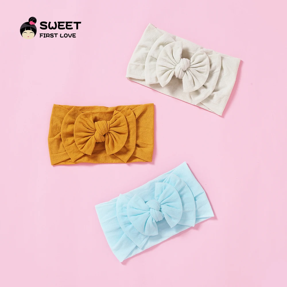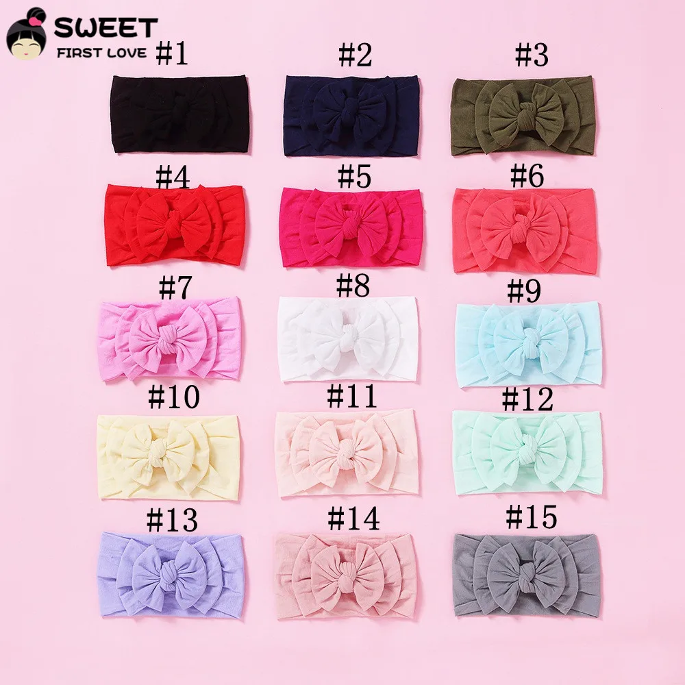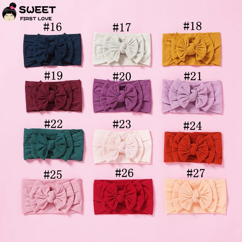 Comprar Diadema para bebé y niña recién nacida, bandanas con lazo sólido, turbante suave de nailon elástico, accesorios para el cabello de bebé