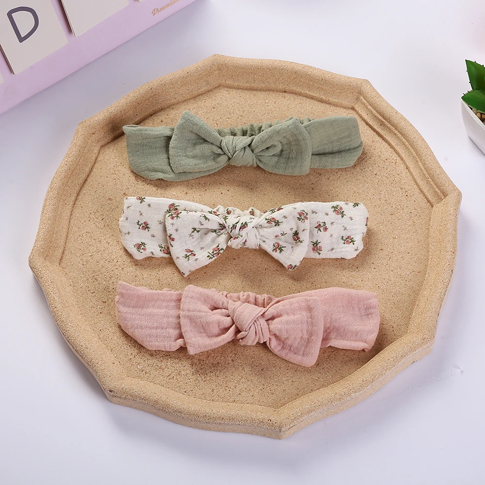 Comprar Diadema de muselina de algodón y lino para bebé, banda elástica para el pelo con orejas de conejo, para niña turbante, accesorios elásticos, 2 juegos por lote