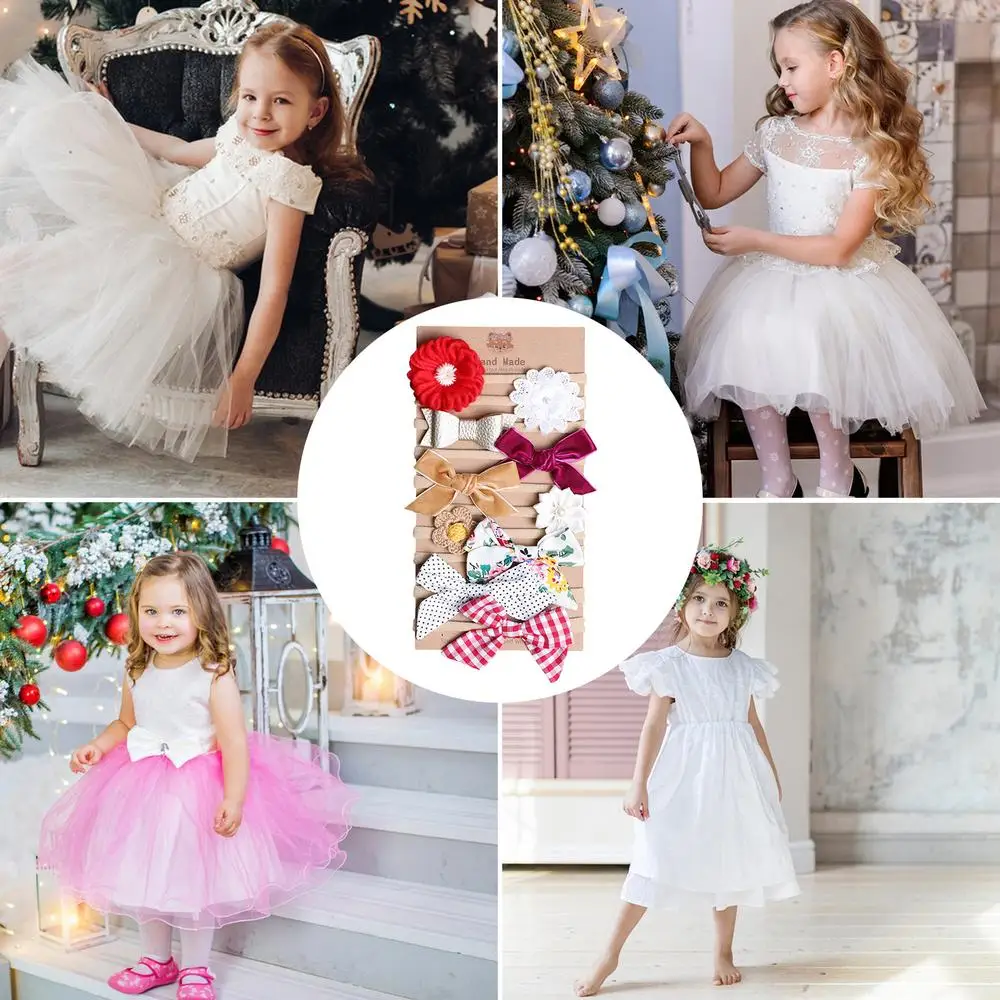 3. Usos múltiples: estas diademas con lazo son fáciles de vestir y adecuadas para cualquier ocasión, incluida Navidad, Acción de Gracias y uso diario.Observe cómo vuele su encanto en espectáculos de bebés y otros eventos especiales.