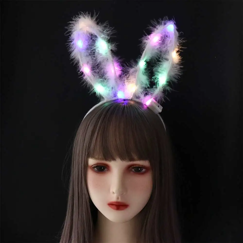 Comprar Diadema de plumas LED brillante para mujer, diadema luminosa con Orejas de conejo, Aro para el pelo, fiesta de año nuevo y Navidad